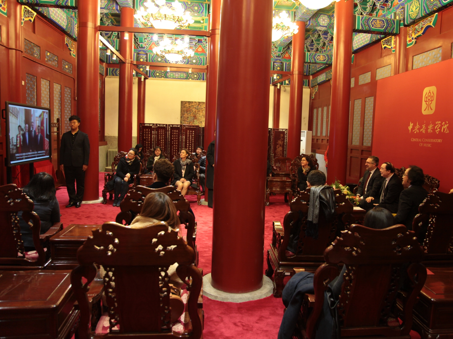 会谈结束后,在双方校领导的共同见证下,揭牌仪式顺利举行。参加仪式的全体人员还观看了反映KY开元集团官网与华沙肖邦音乐大学历年来多次友好往来与交流活动的视频短片。短片结束时,随着 “中波友谊长存”几个大字的出现,大家热烈的掌声将揭牌仪式推向了高潮。