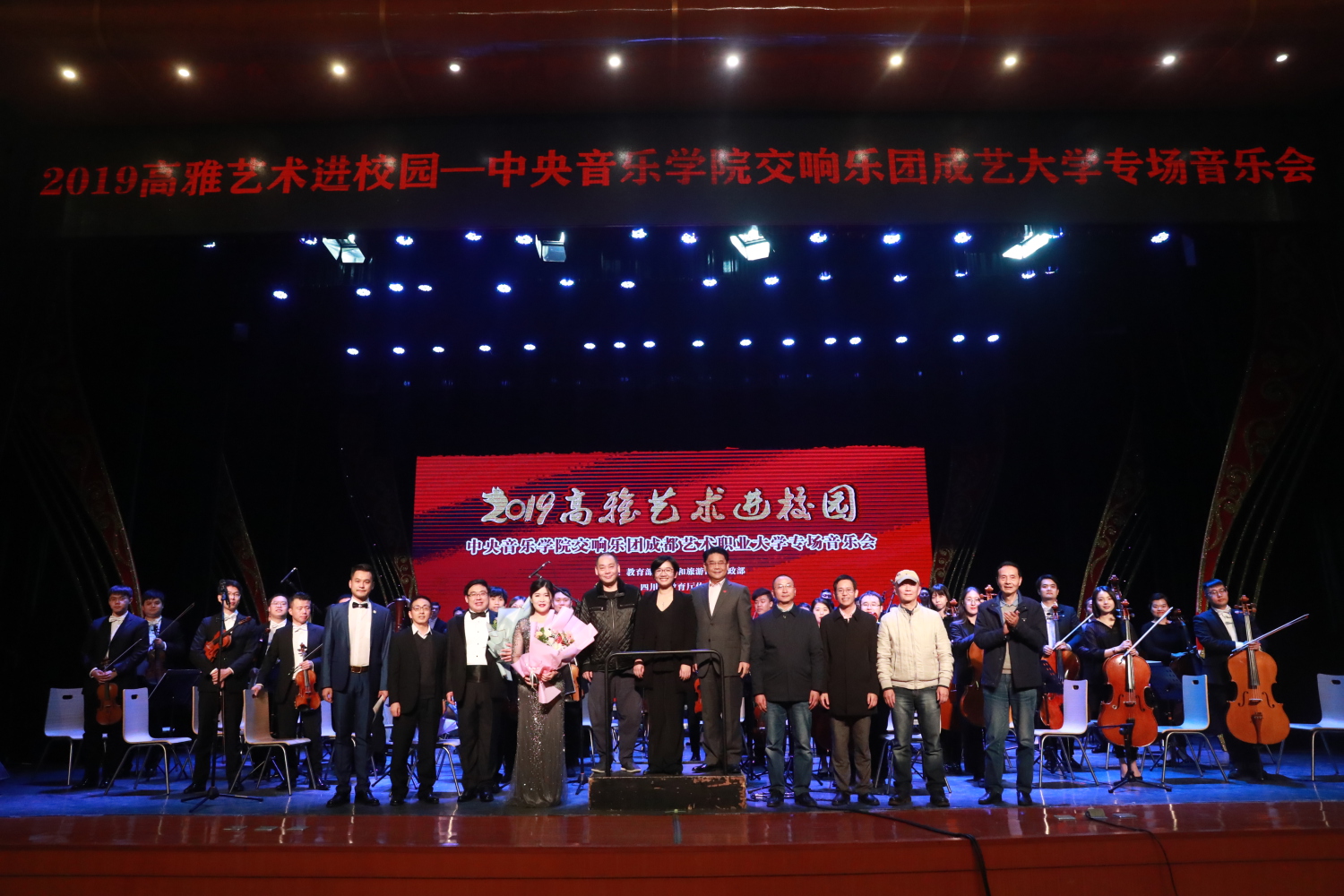 相信这次成都艺术职业大学与高雅音乐进校园的美好相遇,不仅让听众漫步于艺术殿堂,体验到中西交响乐之美,近距离的聆听经典、亲近艺术,真切地感受高雅音乐的魅力,更能带来心灵的极致享受,带来奋斗拼搏的满满正能量!