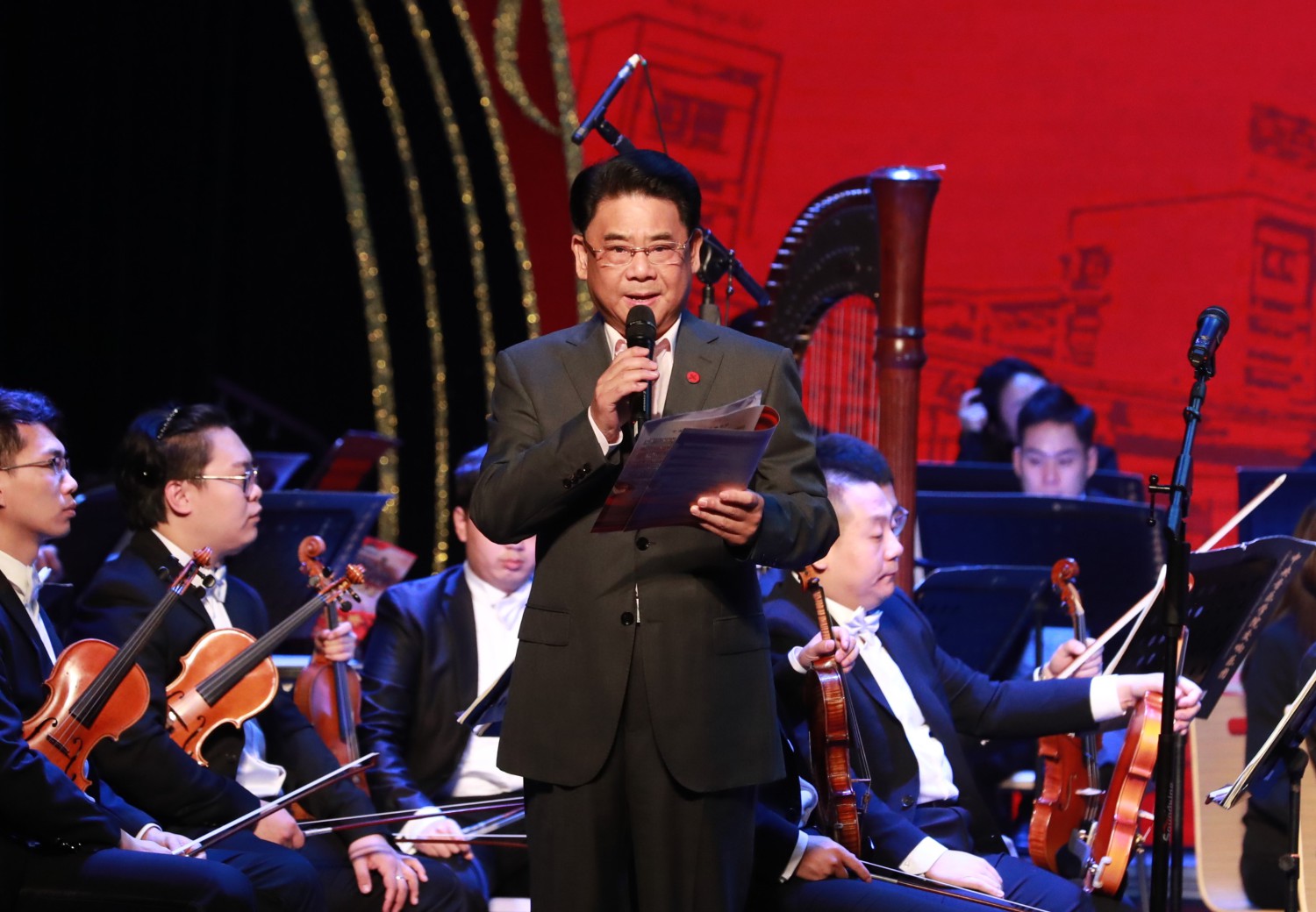 音乐会在全体齐声奏唱《义勇军进行曲》铿锵坚定的乐声中拉开序幕,乐团的音乐家们倾情演奏了《欢乐颂》《红旗颂》等经典中外名曲,时而婉转、时而激昂的旋律将观众带入到交响音乐世界中。随后,乐团指挥赖嘉静对交响乐团的编制、声部等进行了详细的介绍,为了达到最佳普及效果,各声部演奏家一一展示乐器并现场演奏音乐片段,观众随之进入到各乐器家族的音乐世界,如弦乐声部小提琴的清亮悠扬、中提琴的温暖丰满、大提琴的深情婉转、低音提琴的深厚有力,木管声部长笛的优美飘逸、单簧管的纯净明朗、双簧管的徐缓如歌,铜管声部的高亢深厚、辉煌饱满,竖琴的灵动柔美,打击乐极强的节奏律动为乐团增添更多音乐色彩,一堂生动有趣的交响乐团普及课呈现在舞台上,现场响起阵阵欢呼与热烈掌声。小提琴协奏曲《梁山伯与祝英台》,花腔女高音刘璐演唱咏叹调《复仇的火焰在燃烧》,中国声乐作品《玛依拉变奏曲》;男高音刘怡然演唱咏叹调《今夜无人入睡》,拿波里民歌《我的太阳》等经典中外声乐作品更是将音乐会推向高潮,乐团精湛的演奏和歌唱家深情的演唱打动了现场观众,赢得现场观众经久不息的掌声。