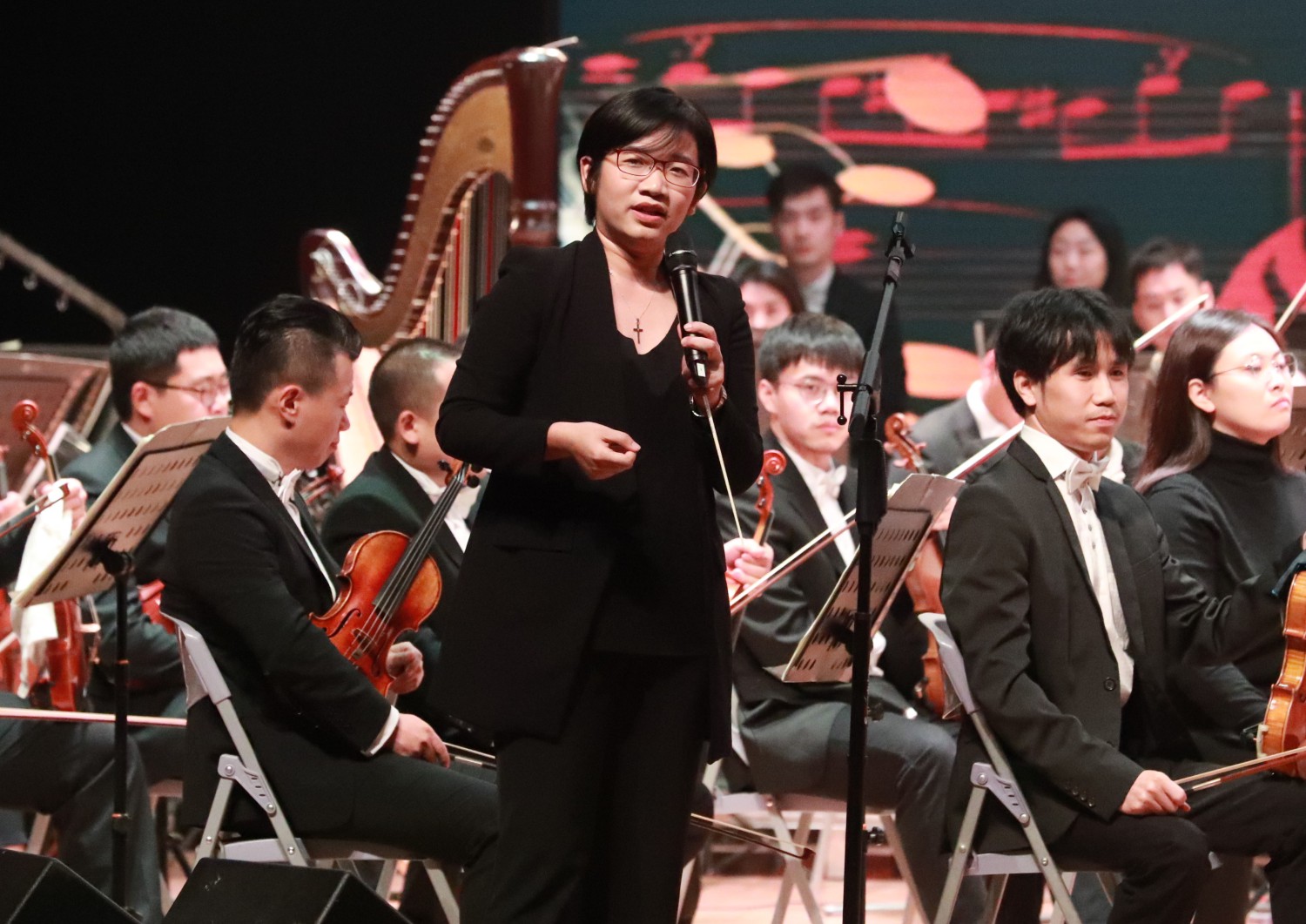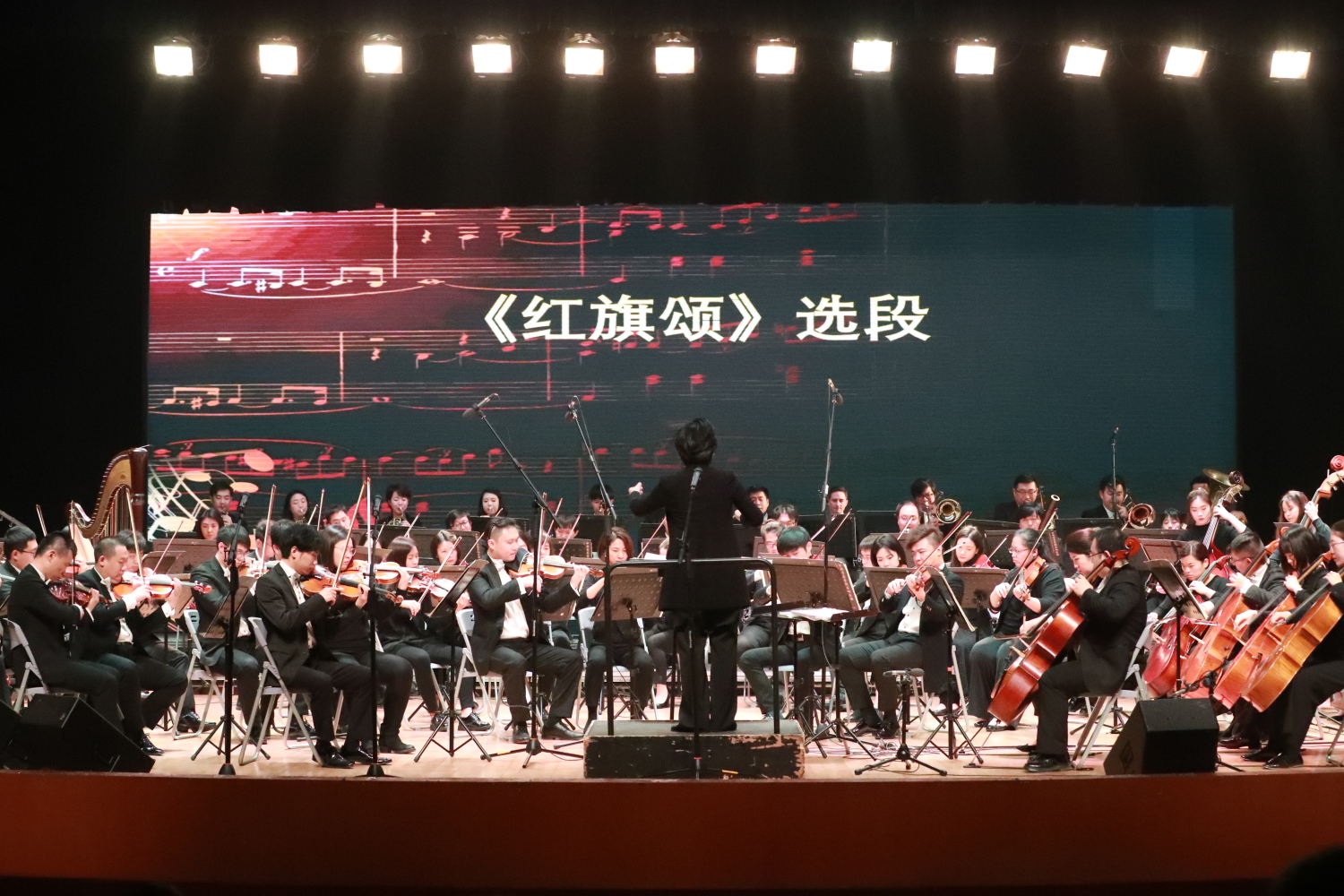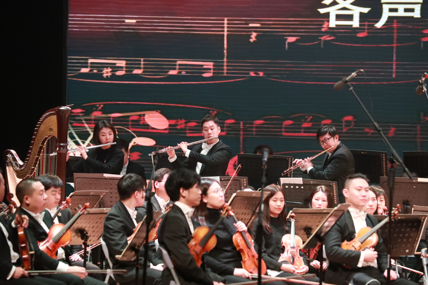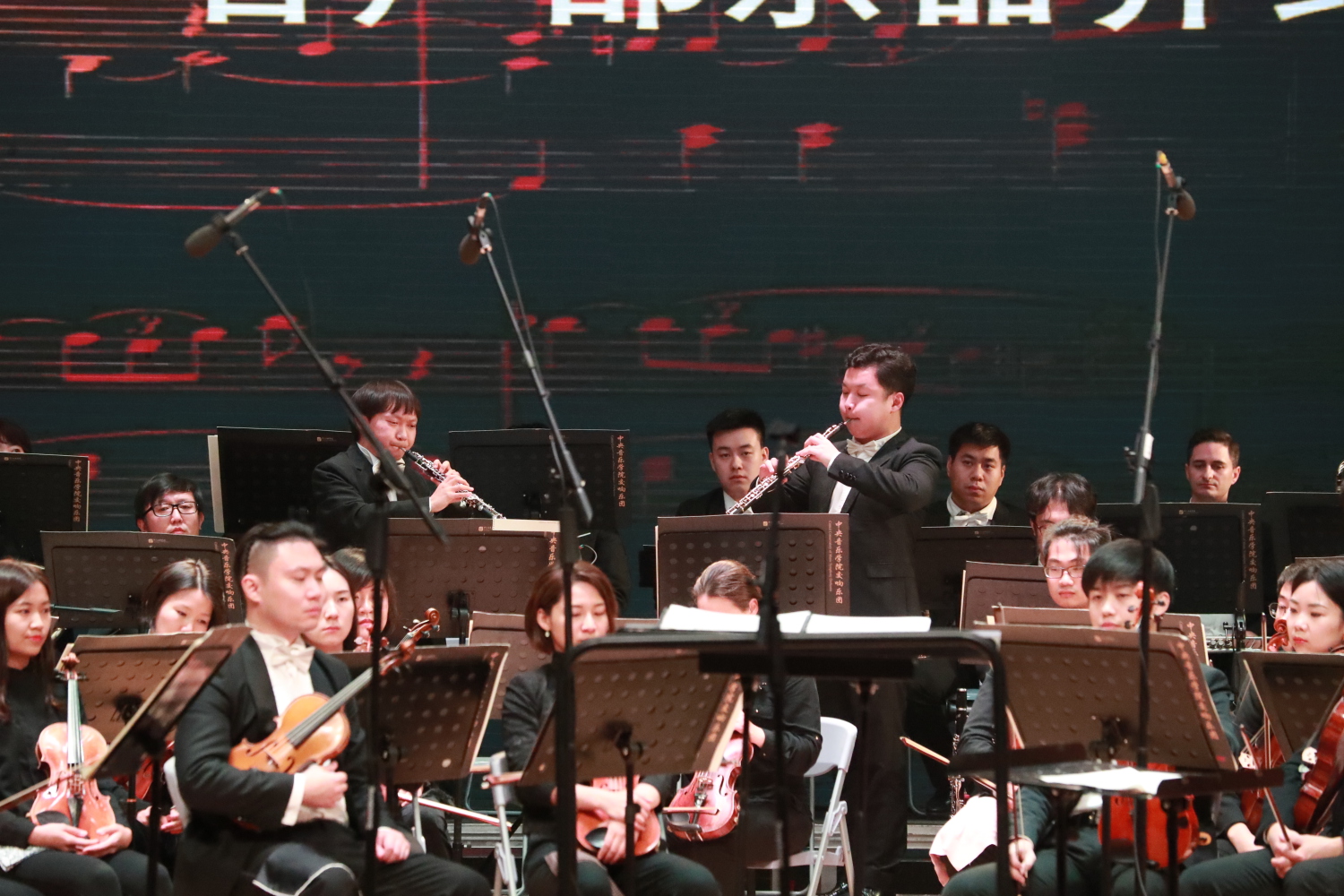 在全体观众与乐团齐声奏唱《义勇军进行曲》庄严的乐声中,音乐会拉开帷幕。被称为中华民族解放的号角——中华人民共和国国歌,即《义勇军进行曲》,由田汉作词,聂耳作曲,是电影《风云儿女》的主题歌,该歌曲自1935年在民族危亡的关头诞生以来,对激励中国人民的爱国主义精神起了巨大的作用。整场音乐会从全体奏唱《义勇军进行曲》开篇,高昂激越、铿锵有力的旋律和鼓舞人心的歌词,令全场动容、倍感振奋。