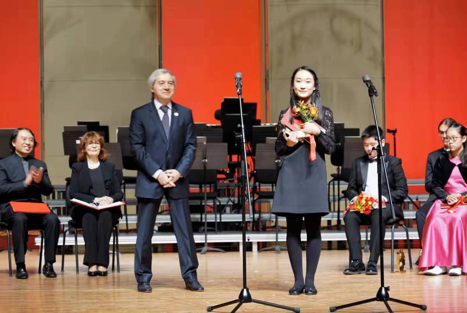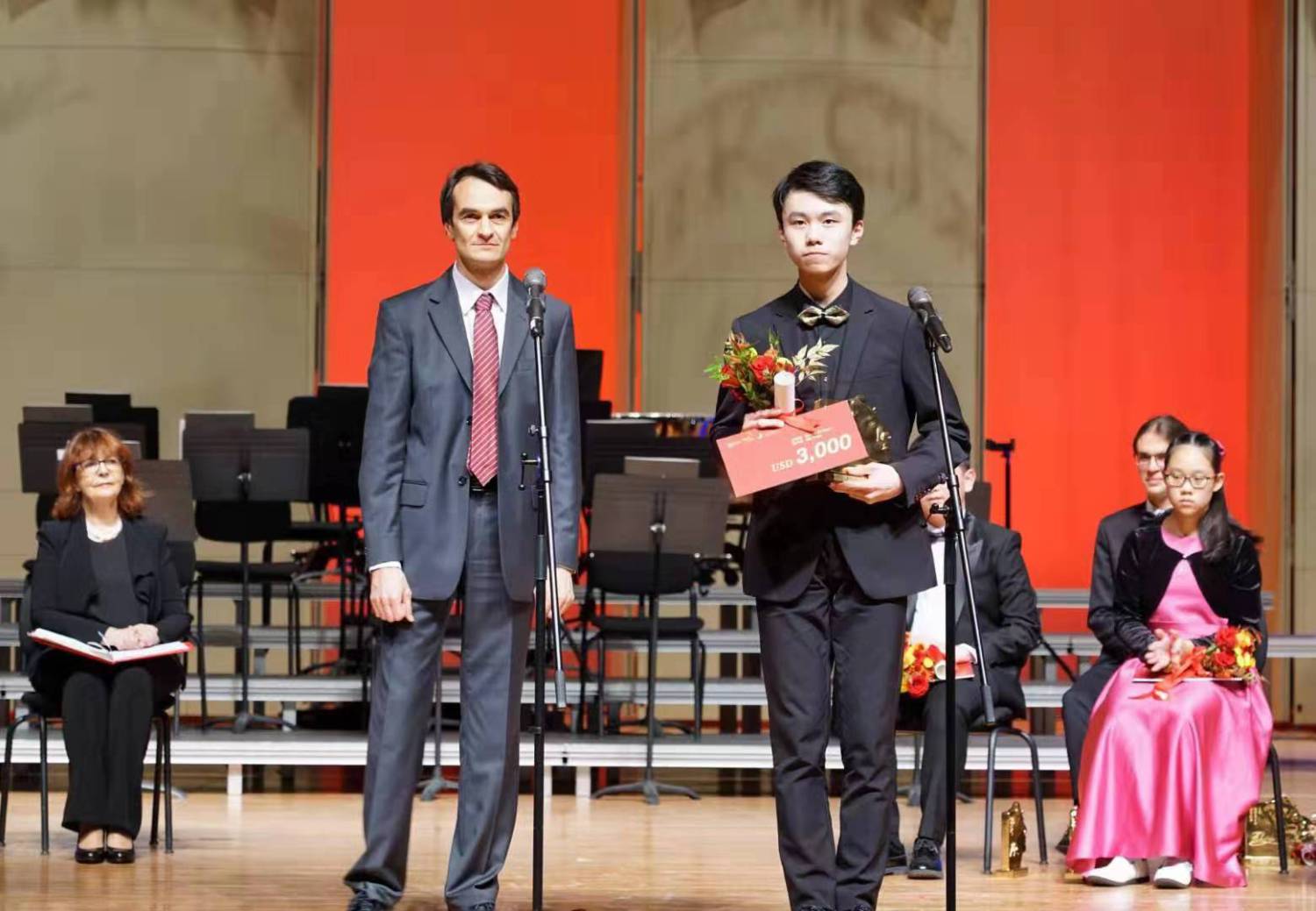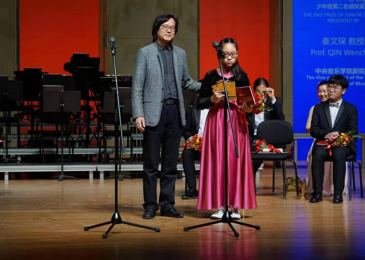 比赛组委会主席、艺术总监俞峰院长和评委会主席波波娃·齐德隆教授为青年组第一名颁奖