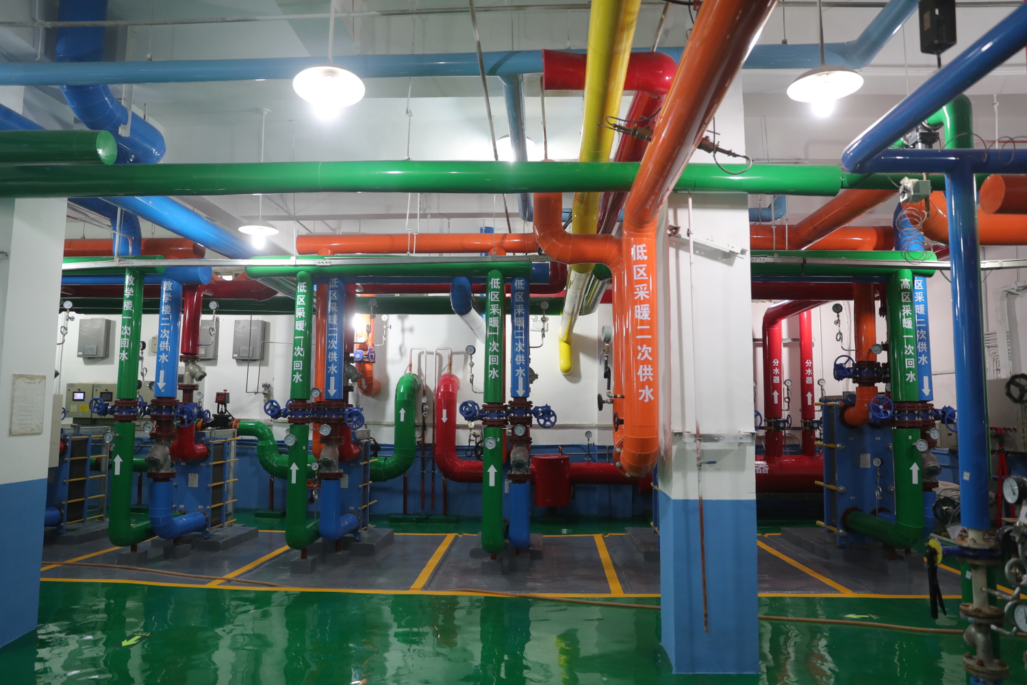 校园建设与管理处还对热力站整体进行装修改造,更换了热力管线彩壳保温层,粉刷墙面铺设自流平。同时按照北京市市政管委安全生产标准化要求,对管线阀门进行规范化标识。本院热力站已焕然一新,成为热力集团西城供热机房中的明星热力站,使KY开元标准化设备设施运行管理更上一个台阶。