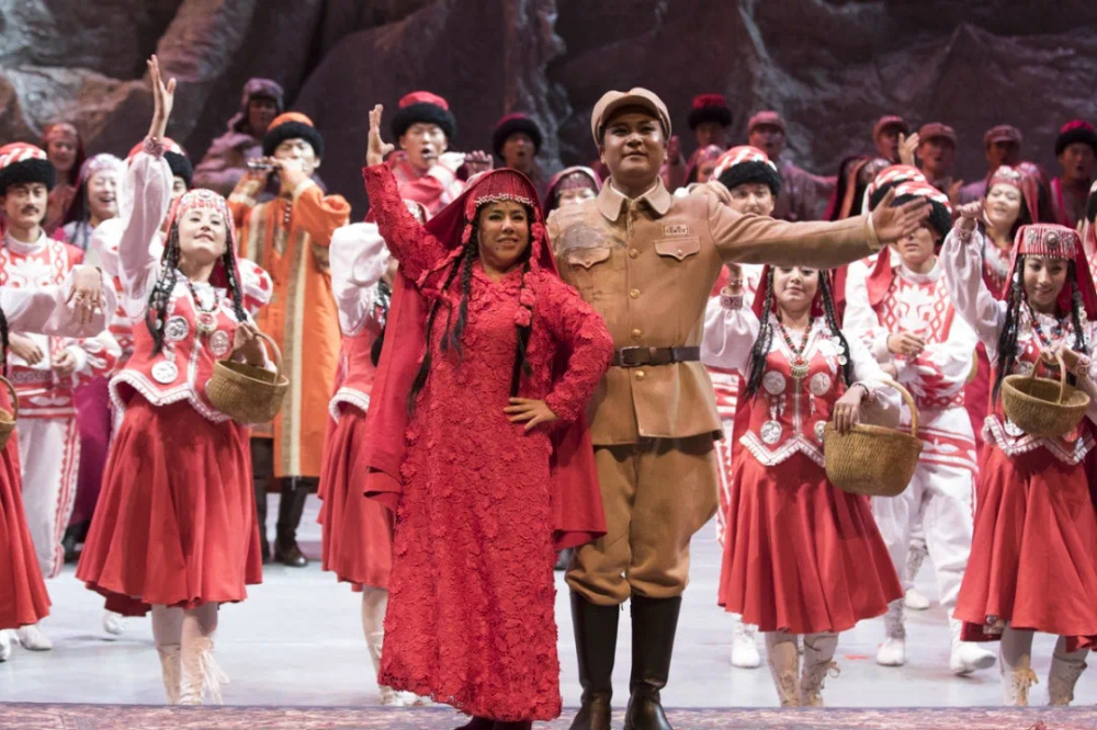 歌剧《冰山上的来客》于2014年首演,便获得热烈反响,2015年,该部歌剧被拍成电影,今年疫情恢复演出后,国家大剧院再次上演全剧。该剧将经典电影改编成歌剧,首次涉及反特题材,以歌剧这种国际化的艺术形式弘扬爱国主义精神,传唱民族大义。该剧拥有强大的创作团队,作曲雷蕾、编剧易茗、张国勇指挥、陈薪伊导演。拜尔老师一袭红衣在水晶般的冰山、挺拔的白杨树、帕米尔红花的映衬下,用动人的歌唱,咏颂着爱情和真善美。已过花甲之年的拜尔老师驾轻就熟地演绎少女古兰丹姆,将我们带到那永不磨灭的青春记忆中。