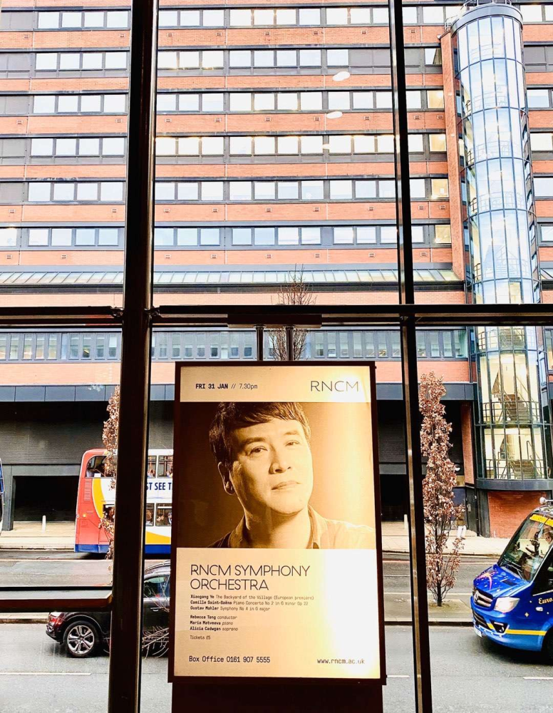 北方皇家音乐学院大堂摆放的叶小纲音乐会海报