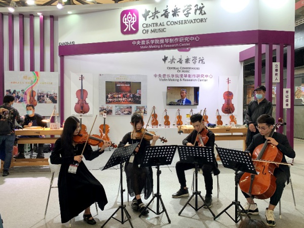 参展学生组建的丝路传琴四重奏组合用自己做的手工琴进行演出