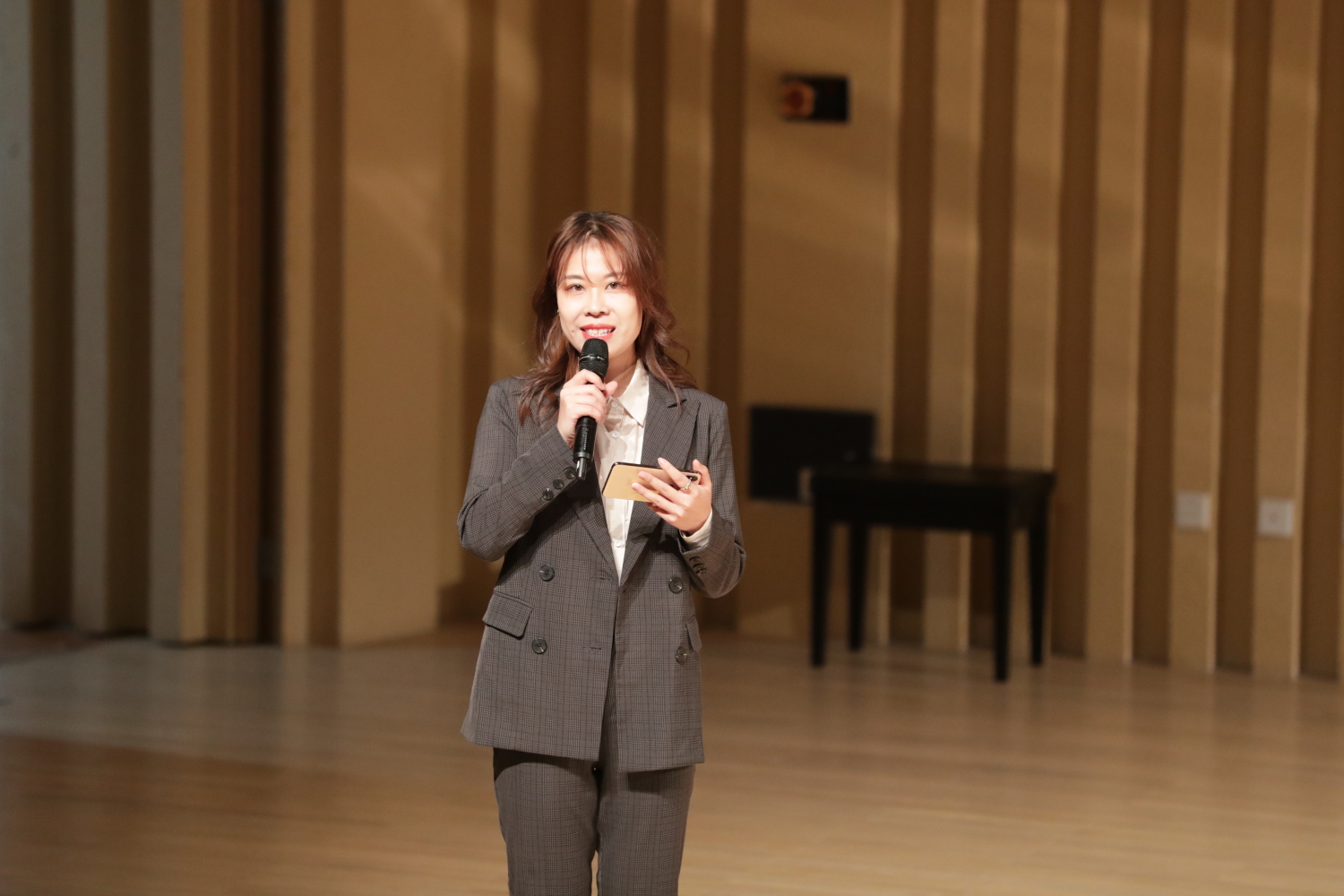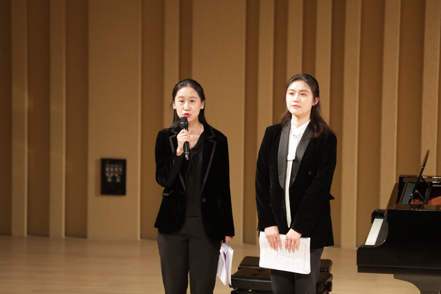 “《培尔金特》这部作品是由挪威作曲家格里格为戏剧家易卜生的诗剧《培尔金特》所写的配乐。我们将用四手联弹的方式为大家演绎《培尔金特》组曲。”