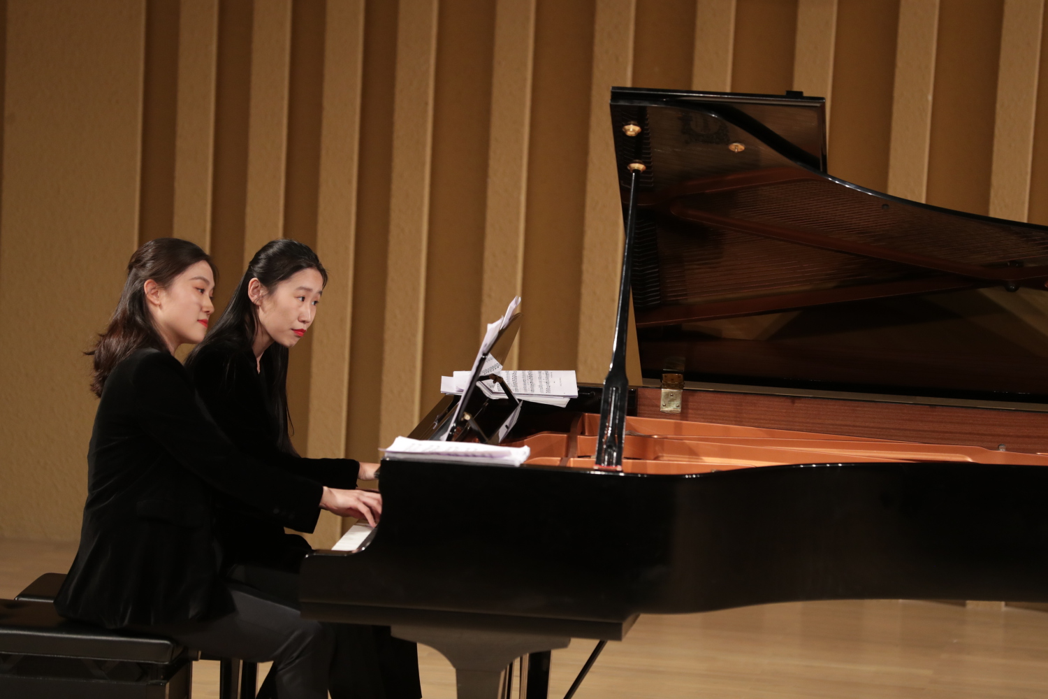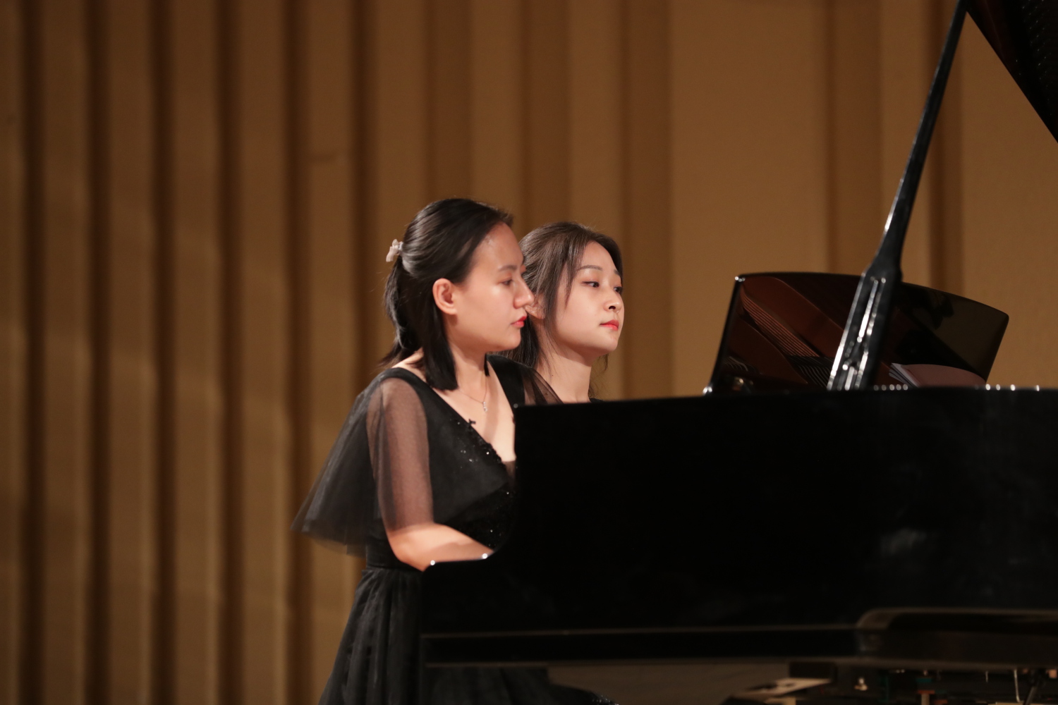 “钢琴四手联弹是钢琴重奏中的一种,双钢琴演奏则是钢琴重奏中的另外一种形式。而与重奏形式相对应的则是钢琴独奏。大家听到的钢琴重奏多由交响乐改编,与钢琴独奏相比,四手联弹的和声织体更加丰富,音响更加宏大,音乐表现力更加丰满。而四手联弹因为是两个人弹一台琴,是合作的艺术,所以在演奏难度上也更加具有挑战性。要求两位演奏者从技术技巧到对于音乐的理解都要高度一切,最终实现默契合作。”