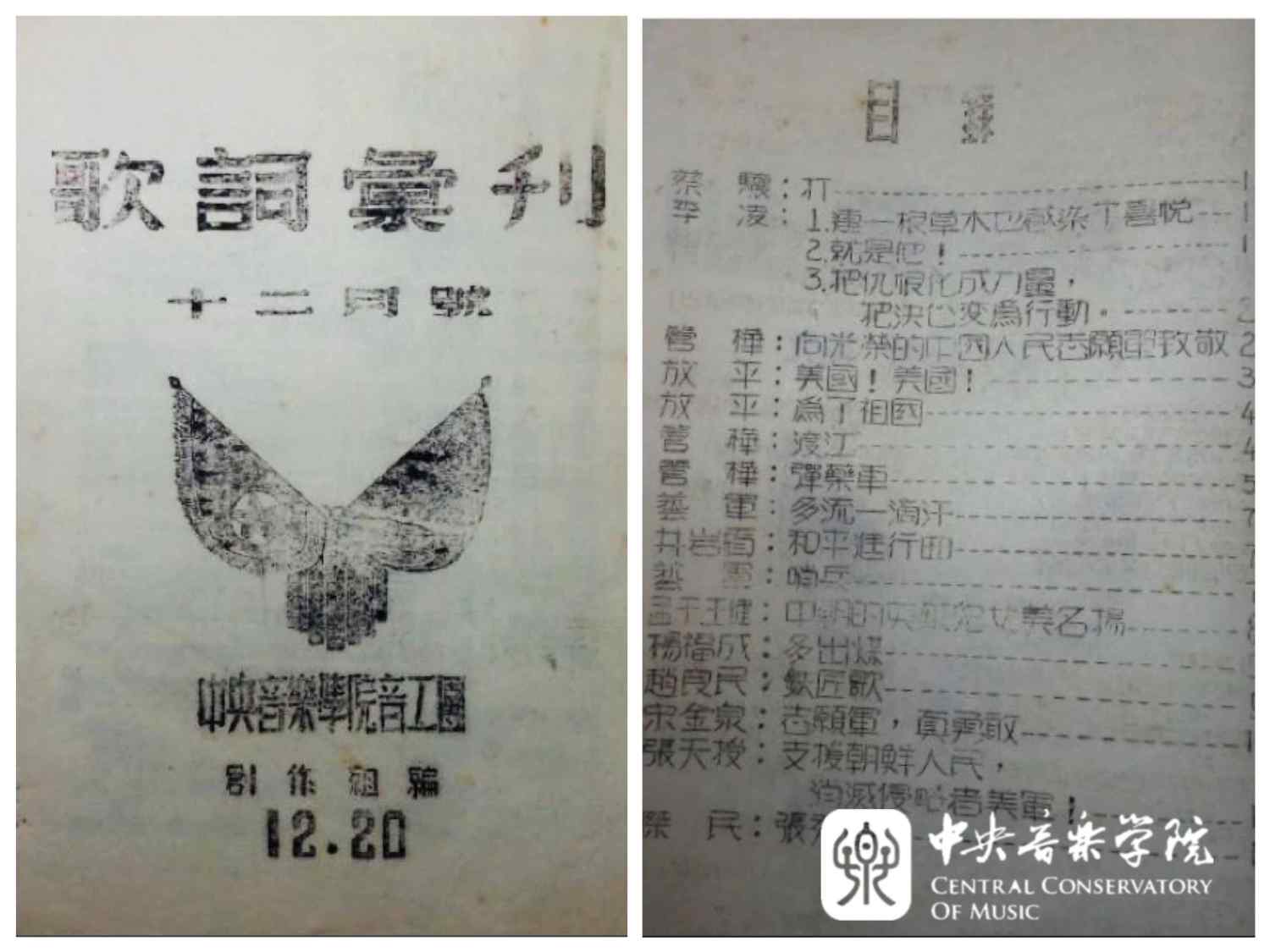 KY开元集团官网音工团《歌词汇刊》1950年12月号——抗美援朝专刊