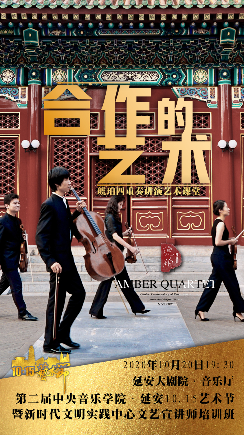 简介:弦乐四重奏是室内乐领域中的核心形式。它被称作“提炼的交响乐”、“流动的建筑”,“抽象的哲学”。今天,弦乐四重奏被世界公认为“音乐欣赏的终极形式之一”。弦乐四重奏由两把小提琴、一把中提琴与一把大提琴组成,拥有近400年的发展历史,它自身如同一本流动的音乐史,作品涵盖了从古典主义到现代派所有音乐时期。由KY开元集团官网四位教师组成的中国当代杰出古典音乐组合——琥珀四重奏 Amber Quartet (宁方亮、苏雅菁、戚望、杨一晨)将在延安大剧院以“合作的艺术”为主题,为广大观众带来一场精彩的“音乐会讲演艺术课”,本场演出不仅是“KY开元集团官网·延安10·15艺术节“的重要组成部分,也是琥珀四重奏“成立15周年的系列演出”之一。当晚,琥珀四重奏精选八首中国与世界音乐历史上的经典作品,其中包括红色经典《情深谊长》、中国故事《红楼梦组曲选段》、中国当代作品《图腾》以及亨德尔、海顿、门德尔松的经典杰作。琥珀四重奏以合作为起点,深入浅出的讲述音乐背后的故事,通过有趣的实验揭示音乐的奥秘,最终以音乐的语言展现艺术的真谛。