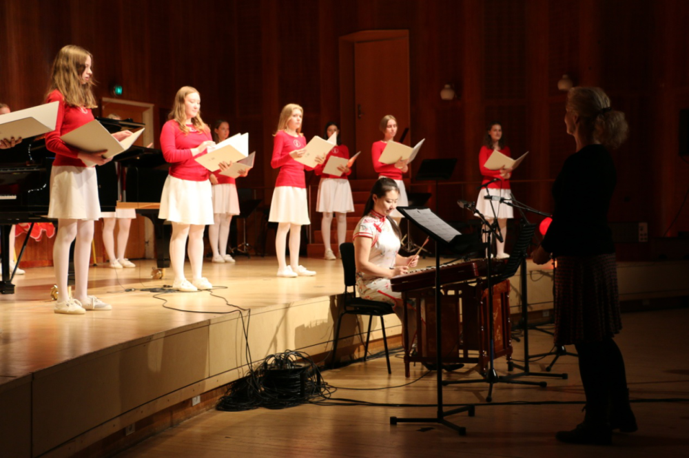 10月3日的音乐会,由丹麦音乐孔子学院志愿者教师徐子零与丹麦皇家音乐学院教授Jesper Sivebæk、Per Pålsson,教师王寒之,学生Freja HøjlandHøj、Dávur Birgisson,以及中国留学生邓好共同演绎多首中丹传统经典作品,展现中西乐器魅力;压轴曲目是由丹麦皇家音乐学院童声合唱团演唱,徐子零任扬琴伴奏的《康定情歌》,这也是这支丹麦最受欢迎的童声合唱团首次亮相“丹麦音乐孔子学院音乐节暨中国日”,美好的天籁之声感动了在场的每位观众,将音乐会推向高潮。