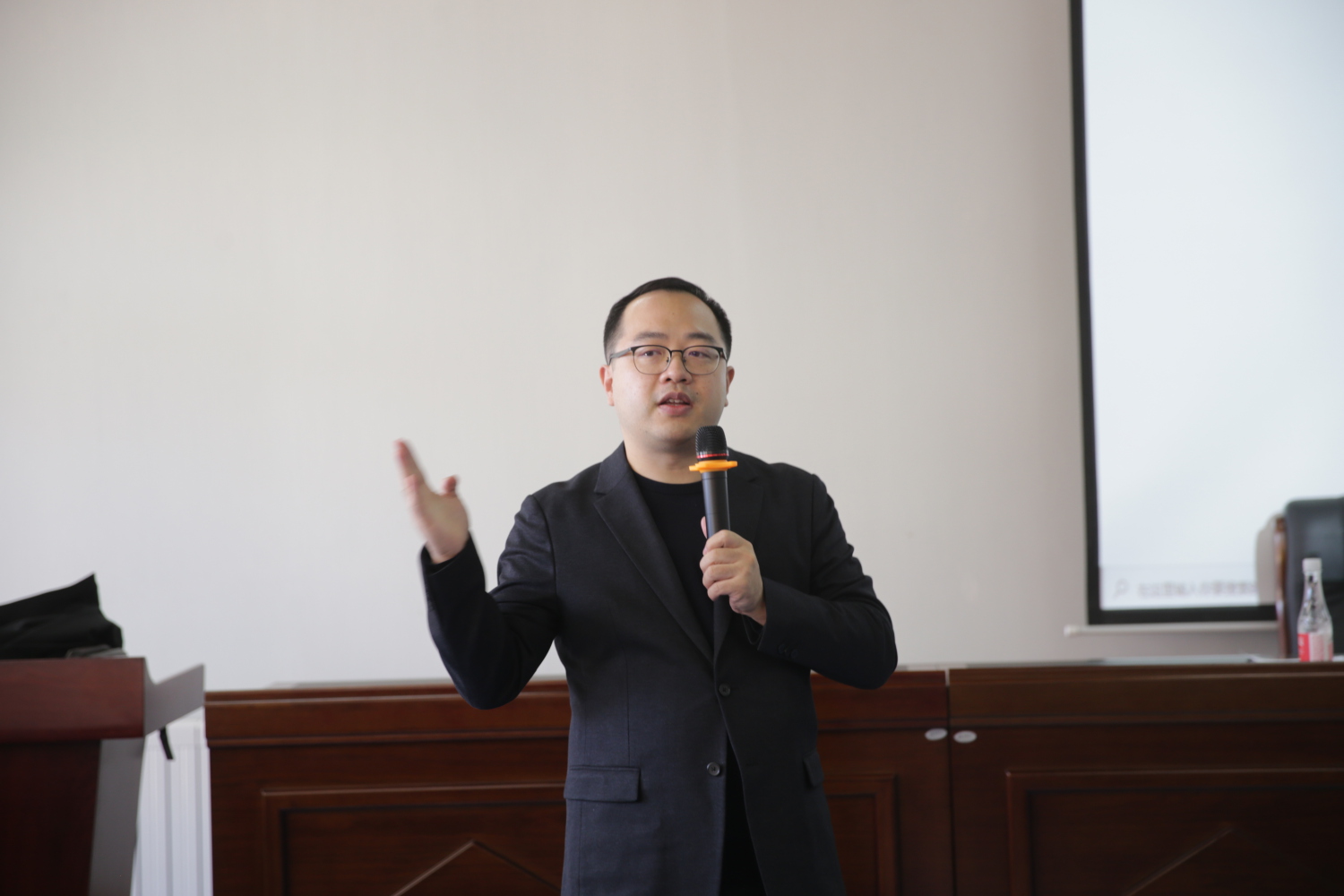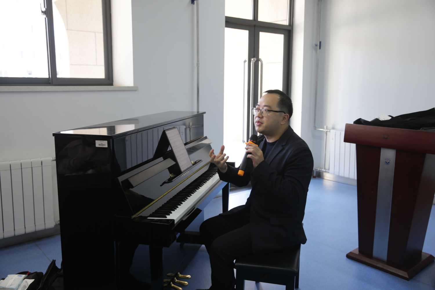 陈欣若教授以讲弹结合的形式,为同学们上了一堂生动的和声课。他从广义和狭义方面对和声进行了介绍,并对中西方之间调式的差别和不同调式之间色彩的差异进行了详细的讲解,最后通过同一曲目变换多种和声,让同学们直观地感受到不同和声的色彩。陈欣若教授以广博的知识层面和平实的语言将和声的色彩与音乐风格的关系娓娓道来,让在座的老师、同学们感受到了和声的迷人魅力。