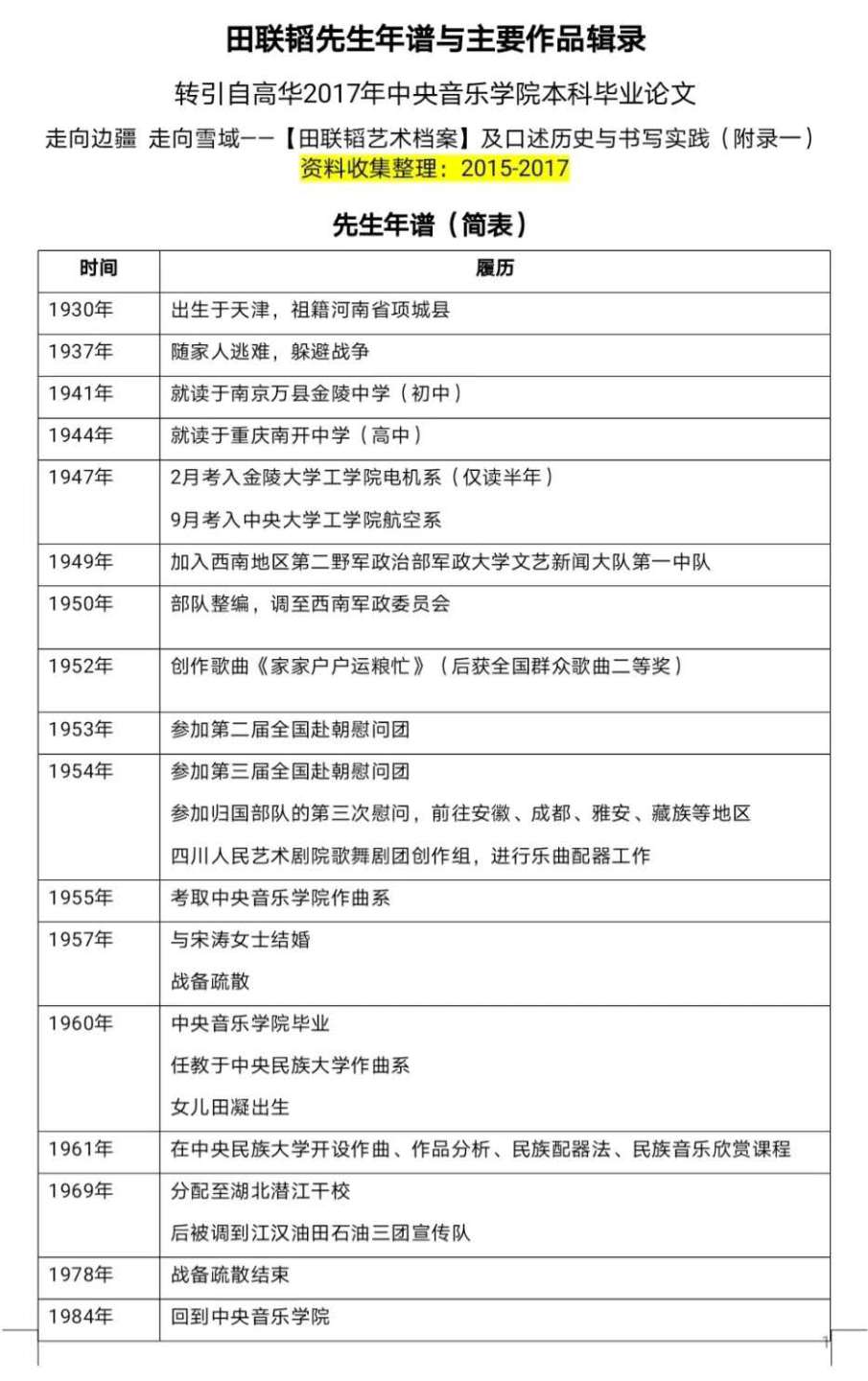 田联韬先生1930年生于天津,祖籍河南项城县。早年就读于南京万县金陵中学(初中)和重庆南开中学(高中)。1948年先后入读南京金陵大学工学院、中央大学工学院。1949年参军,曾在第二野战军政治部文工团、西南军区文工团、西南人民文工团、四川人民艺术剧院任队员、队长、创作员。田联韬先生是中国少数民族音乐教学研究领域老一辈学者的代表、核心和领军人物,半个多世纪以来,一直受到国内外学术界同行的关注,并得到年青一辈后学的崇敬和爱戴。