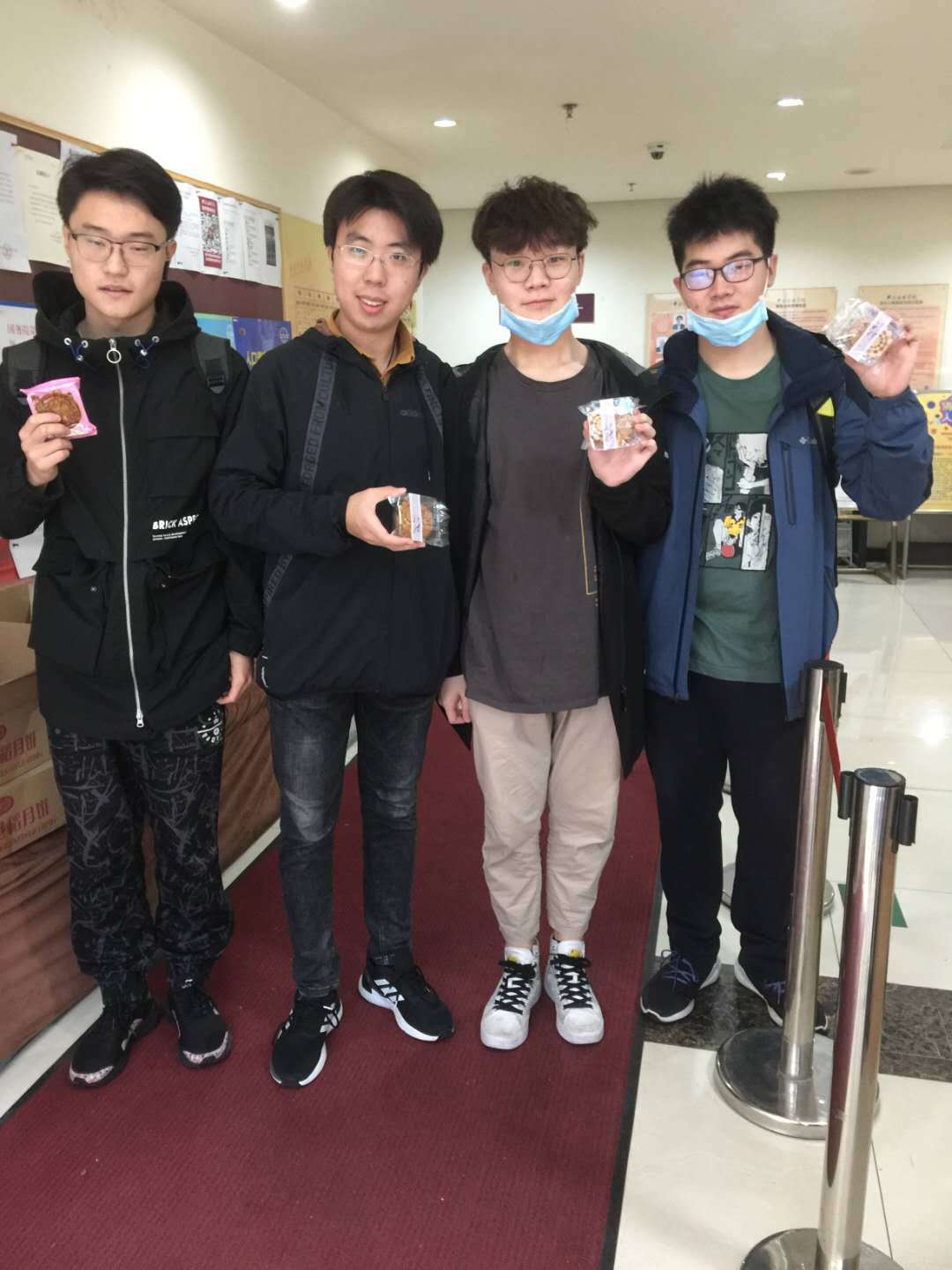 学校给留校学生发放月饼