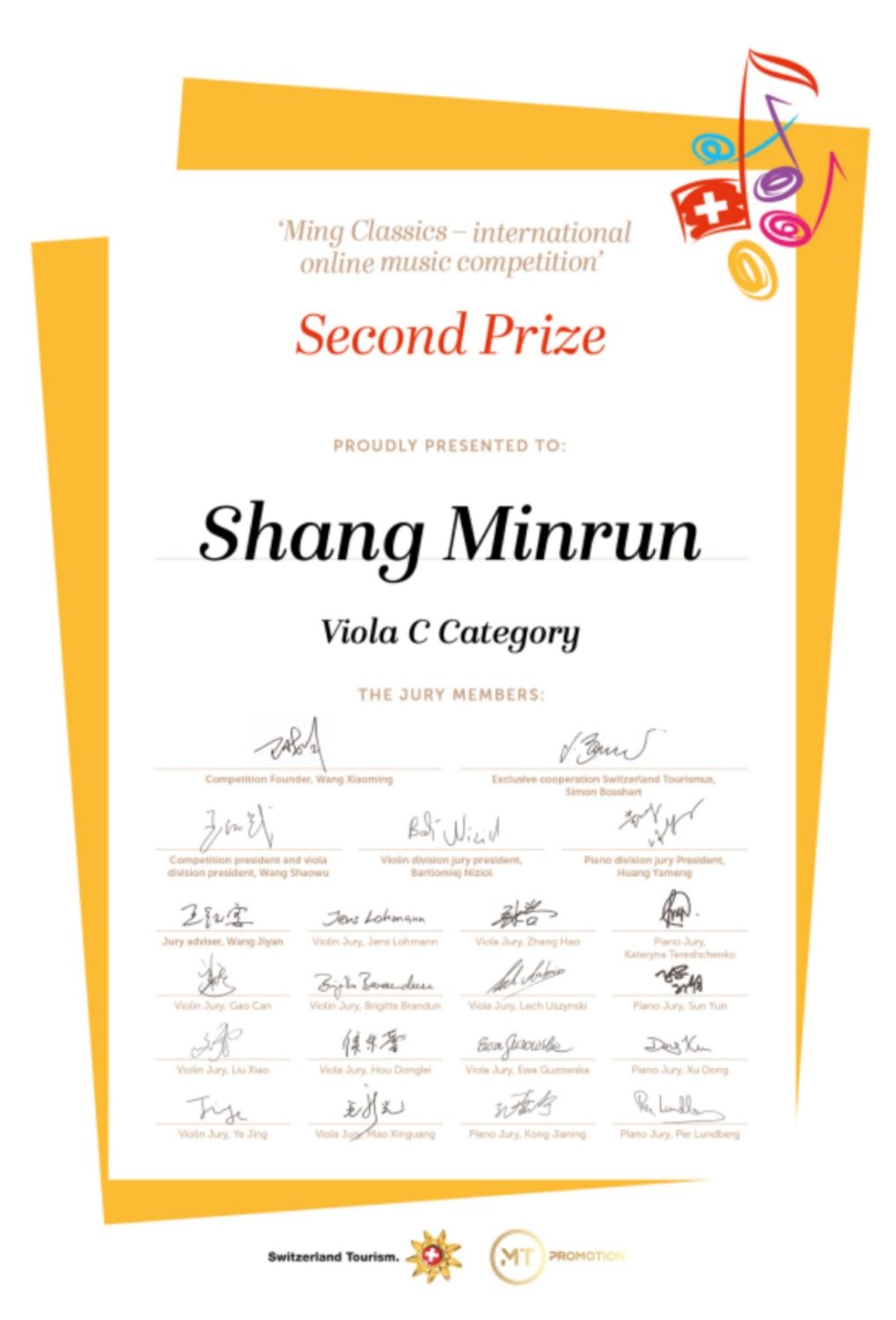 近日,瑞士明日古典国际音乐大赛落下帷幕,KY开元多名学生荣获该比赛佳绩!