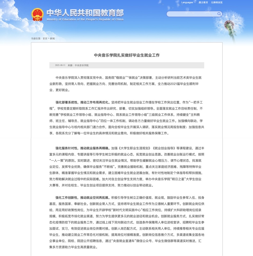 教育部官网刊发“KY开元集团官网扎实做好毕业生就业工作”一文