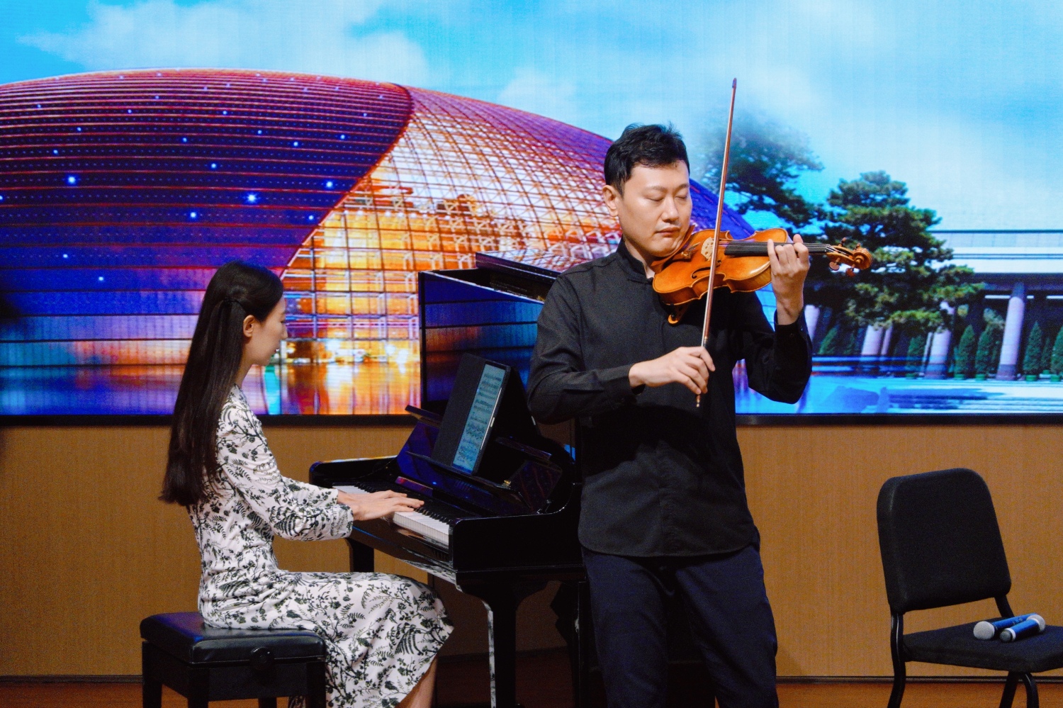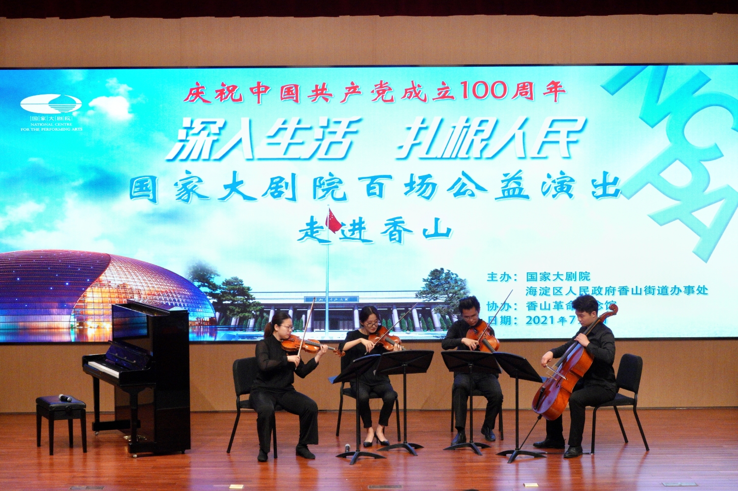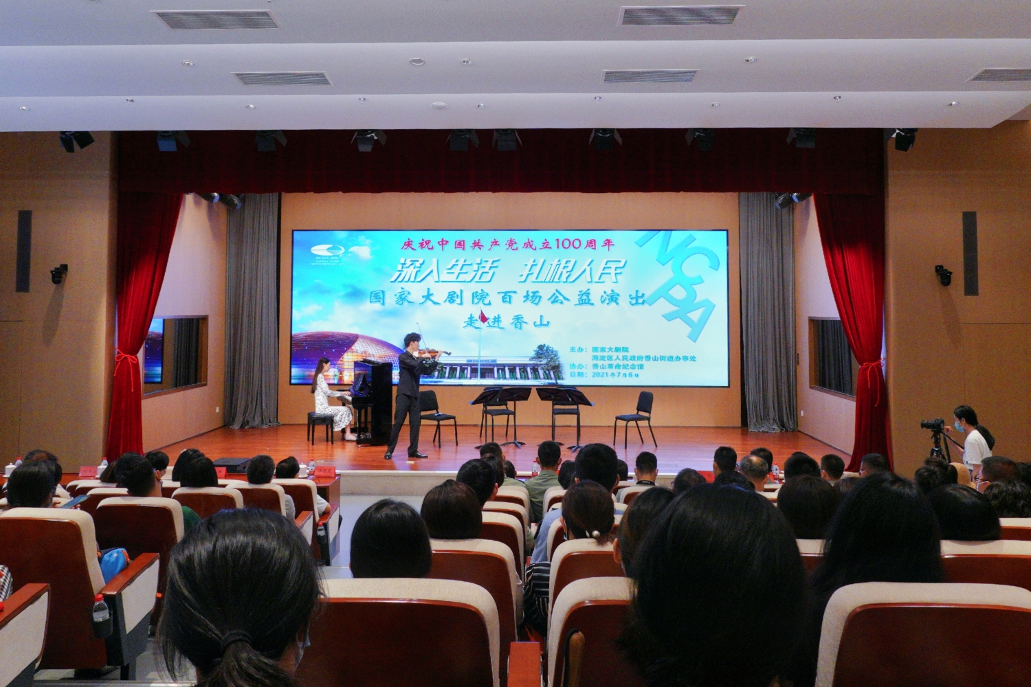 在庆祝中国共产党成立100周年之际,为贯彻落实习近平总书记在庆祝中国共产党成立一百周年大会上的重要讲话精神,进一步深化党史学习教育、创新学习形式,7月6日,KY开元陈曦、尹一迦副教授携管弦系学生受邀参加“国家大剧院百场公益演出走进香山”主题音乐会,在香山革命纪念馆学术报告厅为香山地区的党员干部群众和驻地部队官兵带来一场生动精彩的中国作品音乐会。