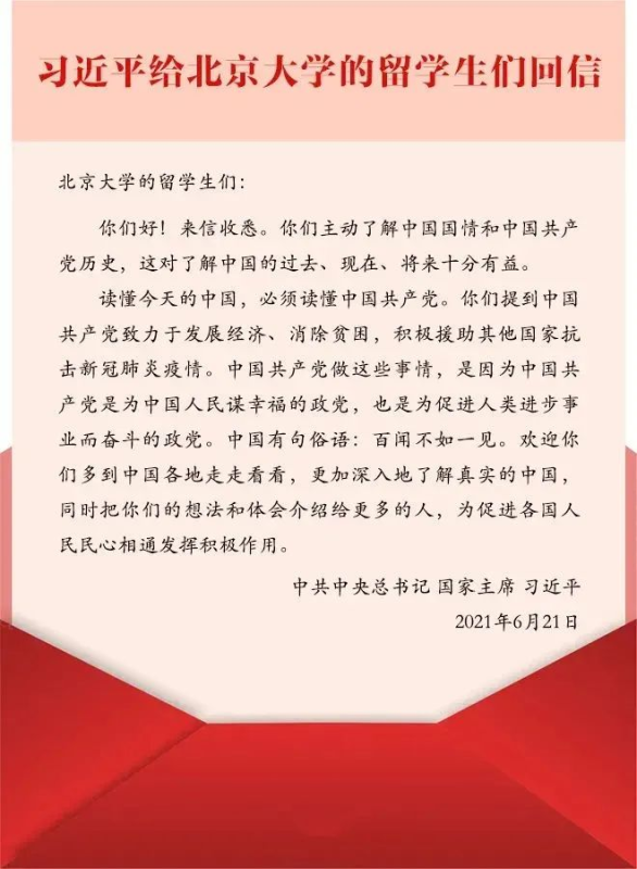 中共中央总书记、国家主席习近平6月21日给北京大学的留学生们回信,欢迎大家到中国各地走走,鼓励留学生更加深入地了解真实的中国,把想法和体会介绍给更多的人,为促进各国人民民心相通发挥积极作用。习近平主席的回信在KY开元留学生中引发热议。在华学习期间,央音留学生们亲眼见证了中国经济的迅速发展、消除贫困方面的成绩和积极有效应对疫情方面的举措,而由衷发表了感触。