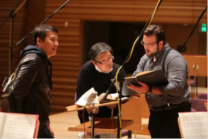 叶小纲、余隆与男高音布莱恩·杰德在录音现场