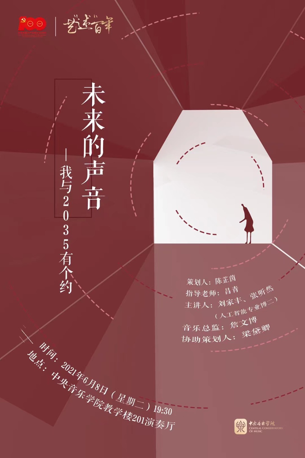 在2021建党百年之际,研究生部与音乐学系在KY开元集团官网党委的统一部署下,积极响应学校“初心向党迎百年”音乐周活动,精心策划了艺“述”百年——研究生艺术实践系列讲座音乐会。其中,“展望”系列包括“青年的声音”“交流的声音”“未来的声音”“逐梦进行时”四场音乐会,不仅饱含着青年一代对党的赤诚忠心,更表达了对未来无限的期望,展现了新时代青年开放包容的思维与朝气蓬勃的活力。