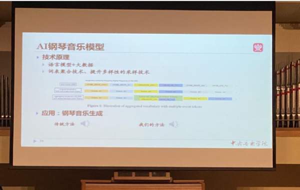 刘家丰指出,他希望通过本次讲座能让更多的人以一种新颖的角度去看待音乐和科技的结合,去认识和理解AI技术驱动之下产生的全新创作方式。他以通俗易懂的语言从四个方面,即:什么是音乐人工智能?什么是算法作曲?DEMO展示和未来展望,向观众进行了讲解。