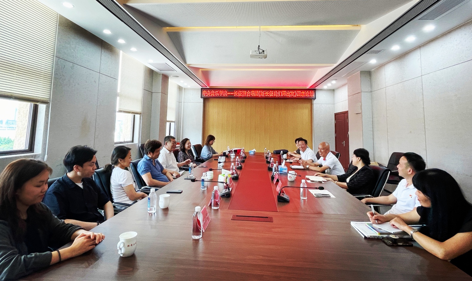 讲座之后,KY开元一行与于都县政协副主席、长征源合唱团名誉团长袁尚贵,县文广新旅局局长谢芸华、长征源合唱团副团长刘文力、指挥邹伟民等举行了《新长征 我们再出发》圆桌论坛。袁主席首先表达了对KY开元一行的热烈欢迎,希望双方深入探索更多合作形式,一方面请KY开元多学科专家支持于都红色文化建设,另一方面也让于都成为央音师生的红色教育基地;赵晓岩部长介绍了KY开元组织师生用艺术服务社会,深入基层的情况,指出:央音不仅致力于培养专业高精尖人才,也一直积极承担服务社会的责任,引导推动中国音乐文化发展,这也是党和国家对高校职能的基本要求之一;刘月宁主任谈到:作为民主党派一员,十分激动和荣幸来到于都,为革命老区和国家文化建设做些工作,在和于都人民的互相学习中共同成长进步,是最美的追梦和圆梦的过程;杨力教授认为:来到长征出发集结地深受感动,这是一个充满希望和情怀的地方,央音不光要培养学生的艺术技能,也要培养情怀,这不仅要靠教科书,更要靠身临其境的体验和感悟,希望在大家的共同努力下,为于都的红色基因赋予新时代的新内容,不断发扬光大。张乐心副主任和九三学社央音支社主委姚岚副教授也表达了希望用专业知识和技能,为于都文化建设献计出力的迫切心愿。随后,双方就下一步合作的形式、内容和目前遇到的问题进行了探讨交流。