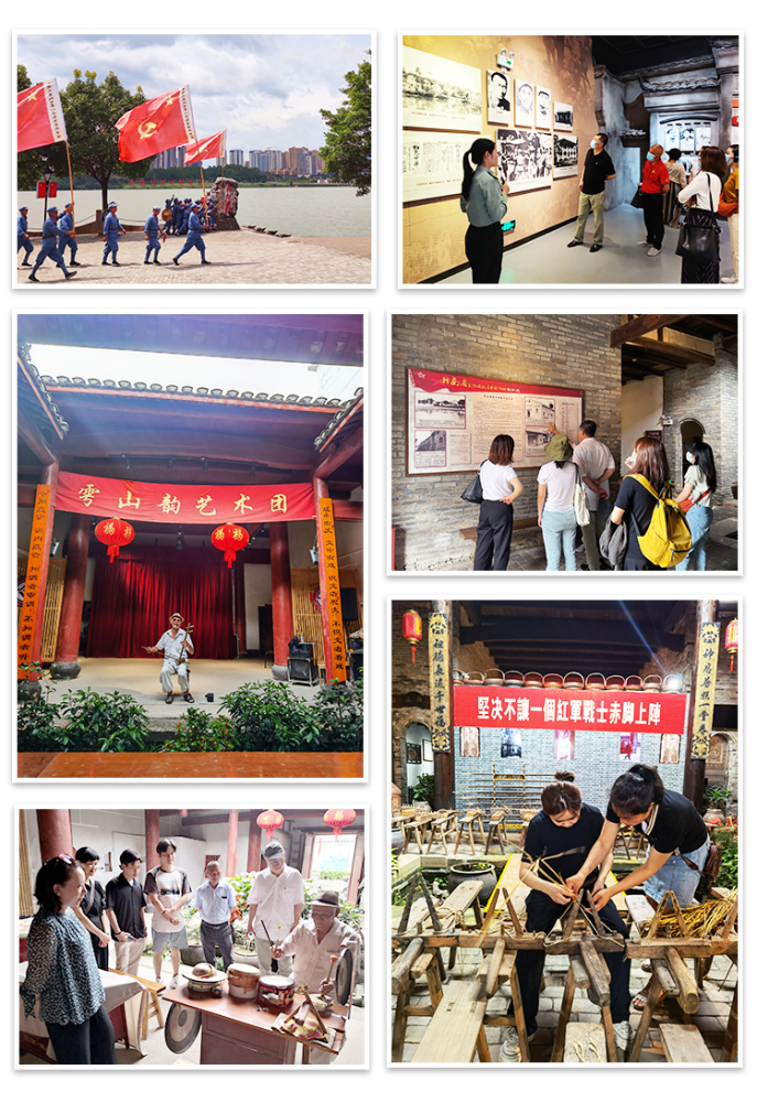 在两天的时间里,KY开元参访团一行除演出、讲座和座谈外,还进行了内容丰富的党史学习和参访活动:沿着2019年习近平总书记在于都的考察路线,参观了中央红军长征出发纪念馆,在长征出发纪念碑前敬献花篮;走访梓山镇潭头村,听孙观发老人讲述他与总书记交谈的生动细节;参访赣南省苏维埃政府旧址暨长征前夕毛泽东同志故居,了解长征策划酝酿到集结出发的全过程;在于都县非物质文化遗产传习所聆听“客家古文”、“江西杖头木偶戏”等传统曲艺表演,为进一步发掘江西丰富的地方音乐资源打下基础。