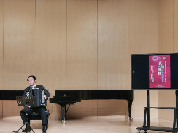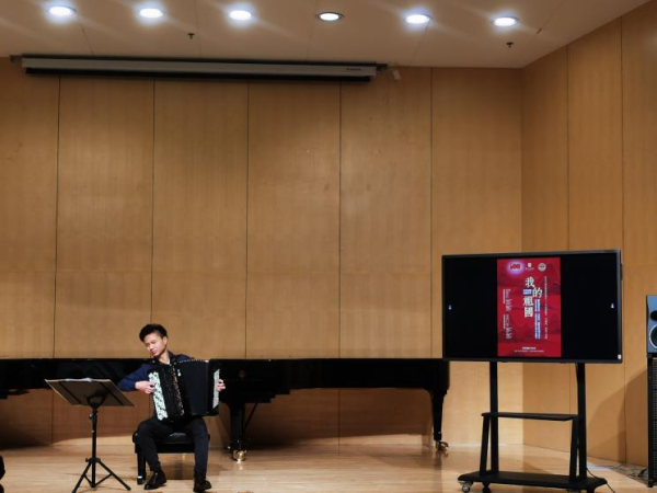 2021年6月20日下午两点,“我的祖国”——钢琴系手风琴师生献礼建党百年“中国风”手风琴新作品音乐会在教学楼1001厅成功举办。青年教师许笑男、许可卿、博士生田佳男、硕士生毛俊澔、附中高二学生翟周洋、张乃心、杨展等七为师生为大家带来了十三首各具特色的“中国风”新作品。它们都是当今我国手风琴作品的最新优秀成果。