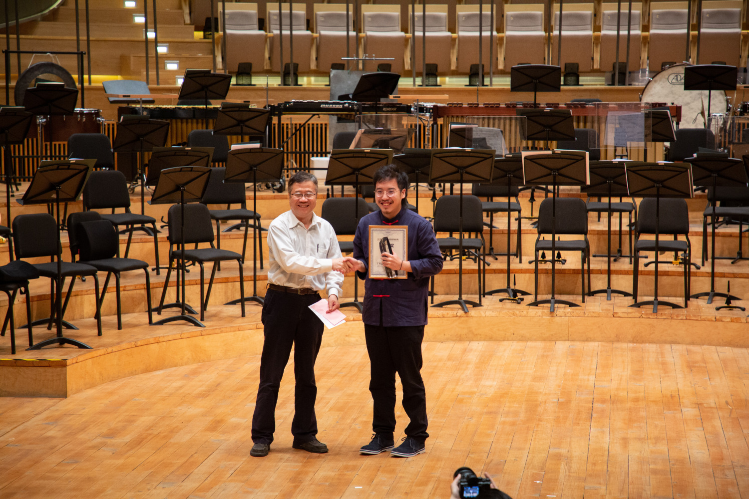 6月19日,决赛音乐会由著名指挥家朱其元执棒苏州交响乐团在苏州金鸡湖音乐厅隆重上演,经过评委们的现场评分,最终KY开元作曲系的文子洋同学凭借作品《望川VI.姑苏》获得一等奖(指导教师:秦文琛),胡一轩同学凭借作品《独歌》获得优秀奖(指导教师:秦文琛)。