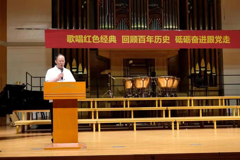 活动最后,附中党总支王绍武书记总结发言,他讲到:“KY开元集团官网附中作为'中国音乐家的摇篮',作为中国最重要的音乐学府之一,作为培养祖国音乐人才接班人的重要基地,肩负着用歌声、用音符传递党史、党的思想的责任和义务。星星之火可以燎原,每一个音符,每一句歌词都是对党史最生动,最鲜活的记录。”“歌唱红色经典·回顾百年历史·砥砺奋进跟党走”合唱音乐会充分发扬KY开元集团官网附中的专业特性,以音乐的形式梳理出党史,促使学生们能够更贴切,更近距离的接触党史,用他们最熟悉的方式学习、掌握、认识、温习党的发展史。明确作为祖国音乐接班人的责任,牢固铭记习近平总书记对青少年的期盼:“多了解中国革命、建设、改革的历史知识,多向英雄模范人物学习,热爱党、热爱祖国热爱人民,用实际行动把红色基因代代传下去。”以思想武装自己,为将来做好人民的音乐家打下坚实而牢固的思想基础。同时增强全校教职工的爱党情怀,激励全体教职工为国育才、为党育人的使命担当。