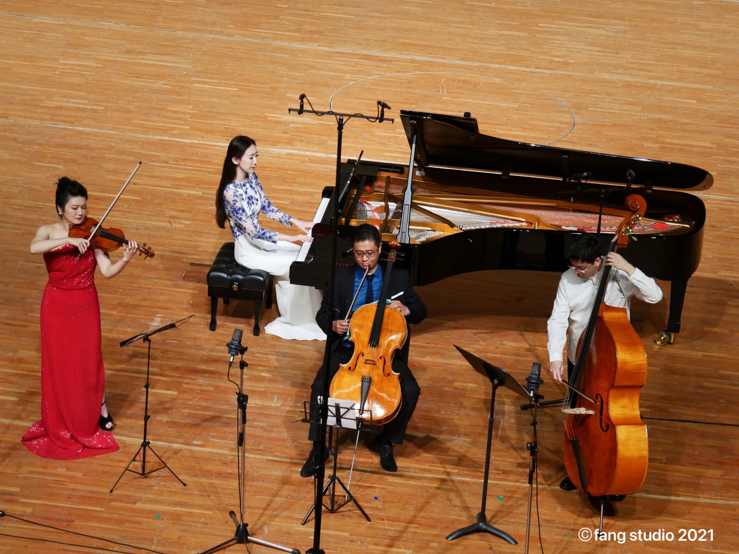6月9日的演出以室内乐形式呈现,由管弦系青年教师们带来了《幻想曲》《牧歌》《只盼着深山出太阳》《浪漫曲》《梁祝》《丝绸之路交响曲》《满江红》《炎黄风情》《我爱你中国》等管弦乐器与钢琴合作的中国室内乐作品,为观众展示了多元民族文化风格。
