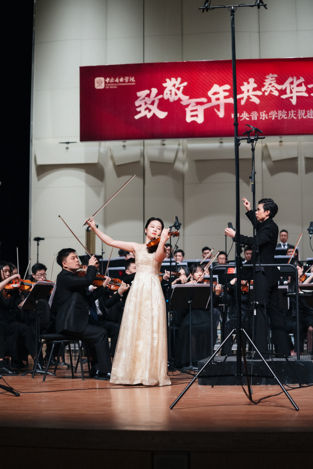6月7日的演出由KY开元集团官网指挥系系主任陈琳教授执棒、管弦系获奖师生与KY开元集团官网青年交响乐团共同为观众们带来管弦乐作品《青年交响曲》、《红旗颂》与《苗岭的早晨》《迎来春色换人间》《花儿为什么这样红》《阳光照耀着塔什库尔干》《金色的炉台》《红军哥哥回来了》6首小提琴独奏、圆号协奏曲《纪念》、弦乐四重奏《情深意长》等时代经典及新创作作品。