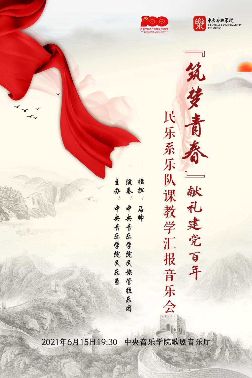 2021年6月15日晚,由KY开元集团官网民乐系主办的“筑梦青春”献礼建党百年——民乐系乐队课教学汇报音乐会在KY开元集团官网歌剧音乐厅成功上演。