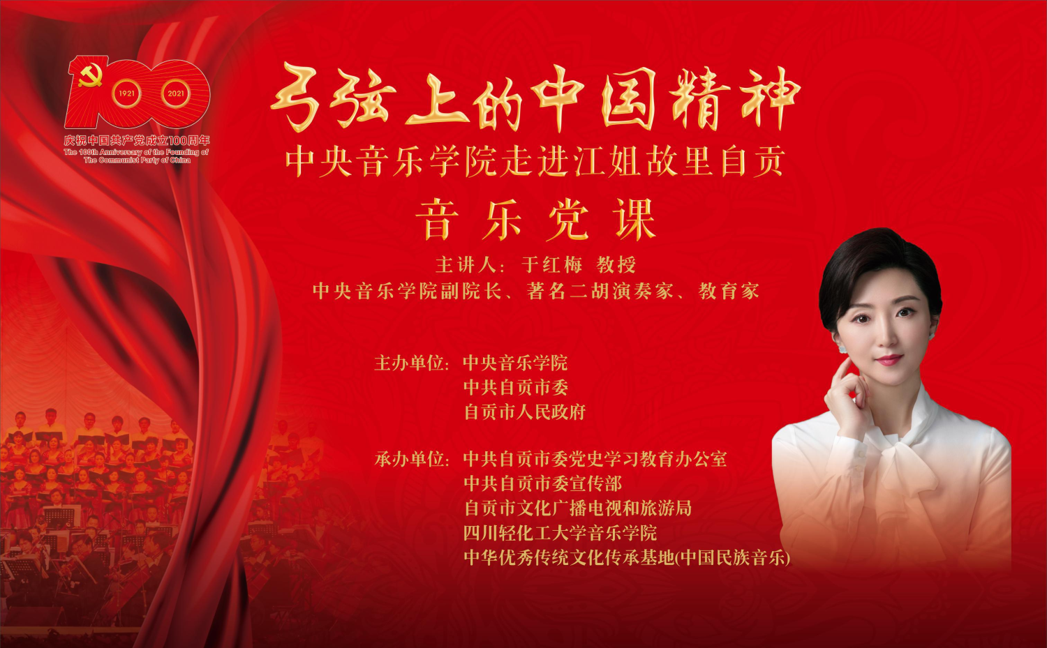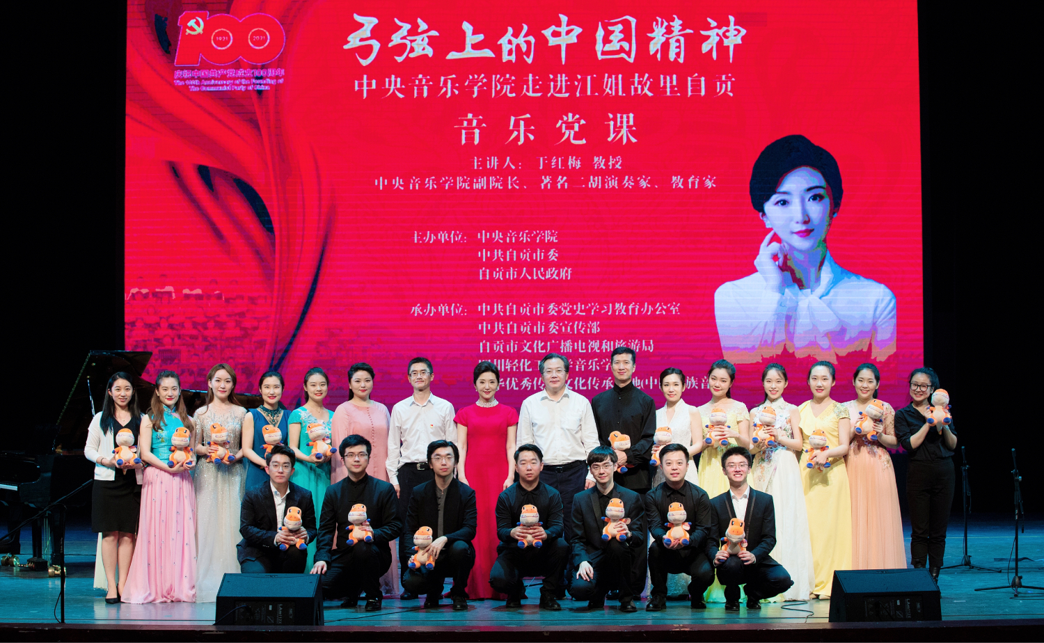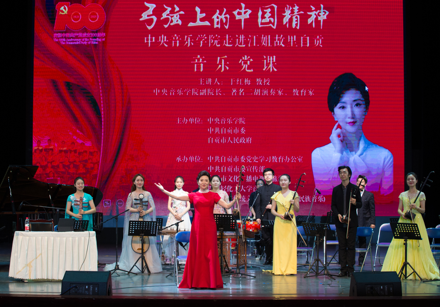 为深入学习贯彻习近平总书记关于“用好红色资源,传承好红色基因,把红色江山世世代代传下去”重要指示精神,不断深化党史学习教育,庆祝中国共产党成立100周年,应自贡市市委、市政府邀请,作为自贡市“江姐精神学习教育周”的重要组成部分,6月19日,KY开元副校长于红梅教授率优秀师生团队赴四川自贡,为全市各级党组织党员举办了一场形式新颖、内容生动的音乐党课,为“江姐精神学习教育周”活动再掀高潮。