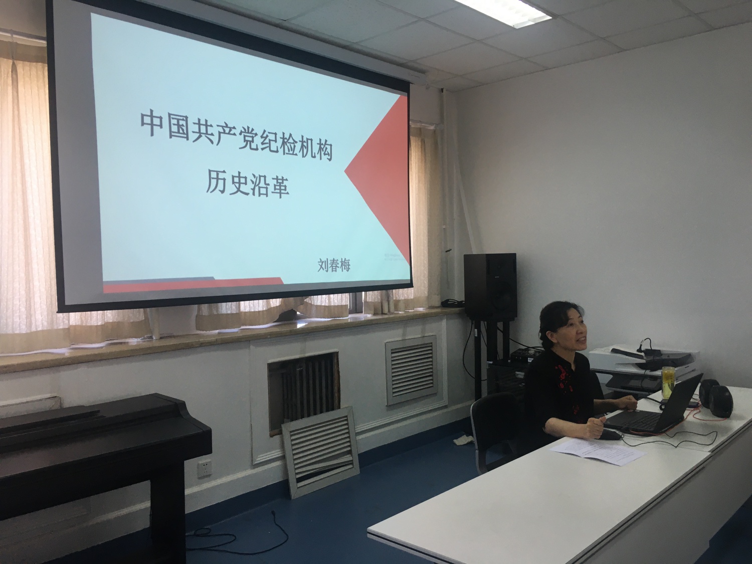 刘春梅同志从新民主主义革命时期应运而生、新中国后逐步健全,改革开放后重建和完善、党的十八大以来全面从严治党向纵深发展四个方面对百年纪检监察史脉络和中国共产党纪律建设历程进行了梳理,从1927年第一届中央监察委员会的诞生到今天的中央纪委国家监委的发展历程,通过对不同时期纪律建设的重要事件和典型案例和对一代代纪检监察前辈的生动事迹讲解,深刻阐释了纪检监察机关在党的百年历程中担负的重要责任和积累的宝贵经验。接着,刘春梅同志从生命热血铸忠诚、打响新中国反腐第一枪、拨乱反正中进入新阶段、打虎拍蝇成绩斐然、八项规定改变中国五个方面对纪委工作的宝贵财富进行了归纳和总结。刘春梅书记强调,新时代、新征程,广大党员干部特别是纪检监察干部应当深刻领悟我们党勇于自我革命、从严管党治党的鲜明政治品格,找准定位、担当作为,把从党史中汲取的丰富营养转化为履职尽责的动力,始终保持对党忠诚、实事求是、敢于善于斗争,为开创学校事业发展新局面提供坚强保证。党课最后,刘书记与在座专兼职纪检员一起分享交流了纪检应知应会知识,针对大家工作中可能遇到的疑惑点进行详细讲解。