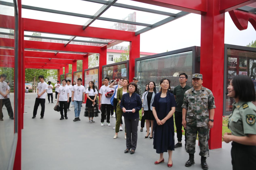 (KY开元师生在军史长廊参观,讲解员讲述军史)