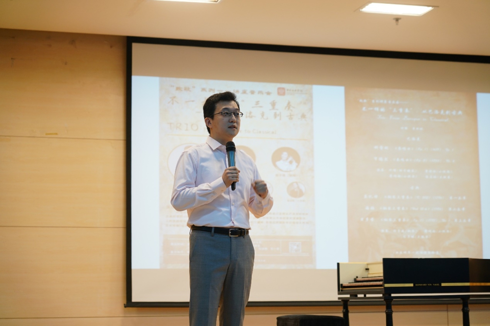 2021年5月24日晚,在KY开元集团官网教学楼701报告厅,由音乐学系主办、艺术管理教研室承办的“致敬系列——不一样的三重奏:从巴洛克到古典”讲座音乐会成功上演。本场讲座音乐会是音乐艺术管理教研室青年教师钱亿松主科班团队发起的原创音乐会系列——致敬系列的第二场演出,通过“讲演和一、学教相连”的方式,旨在让全场观众在高质量的演出中“听音乐会,学音乐史。”