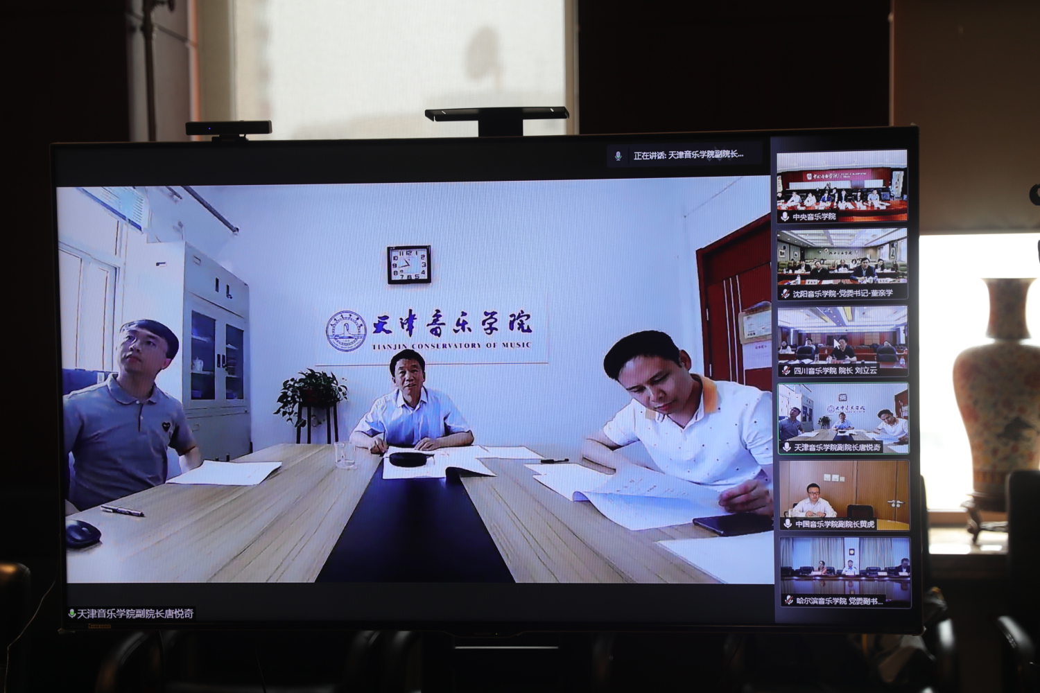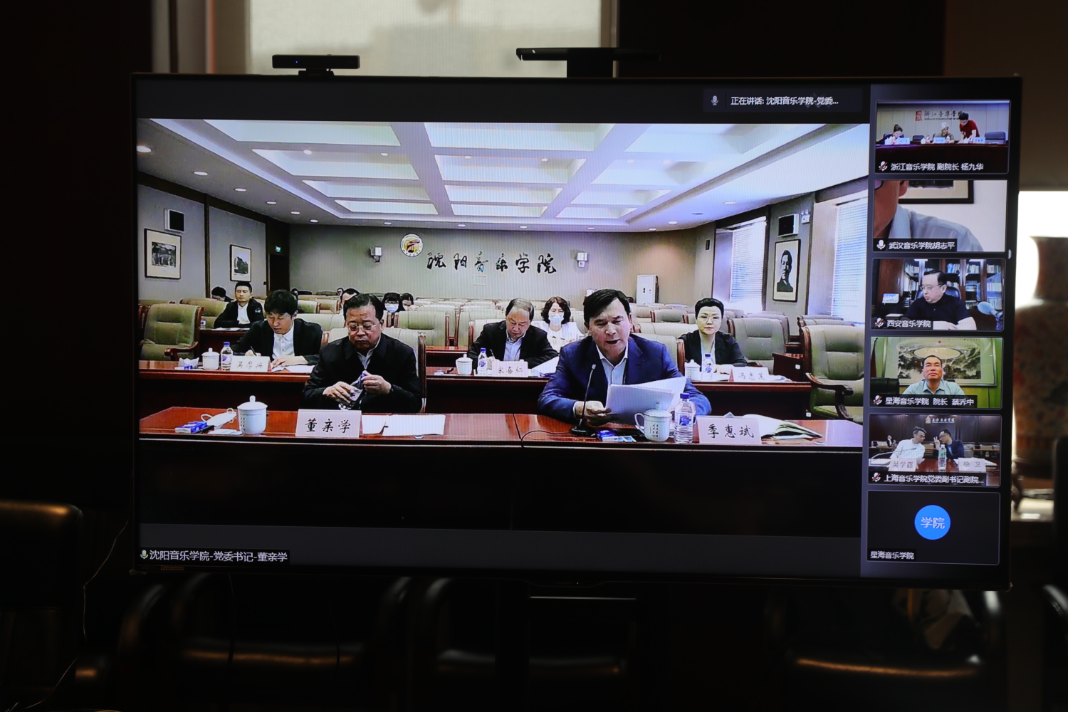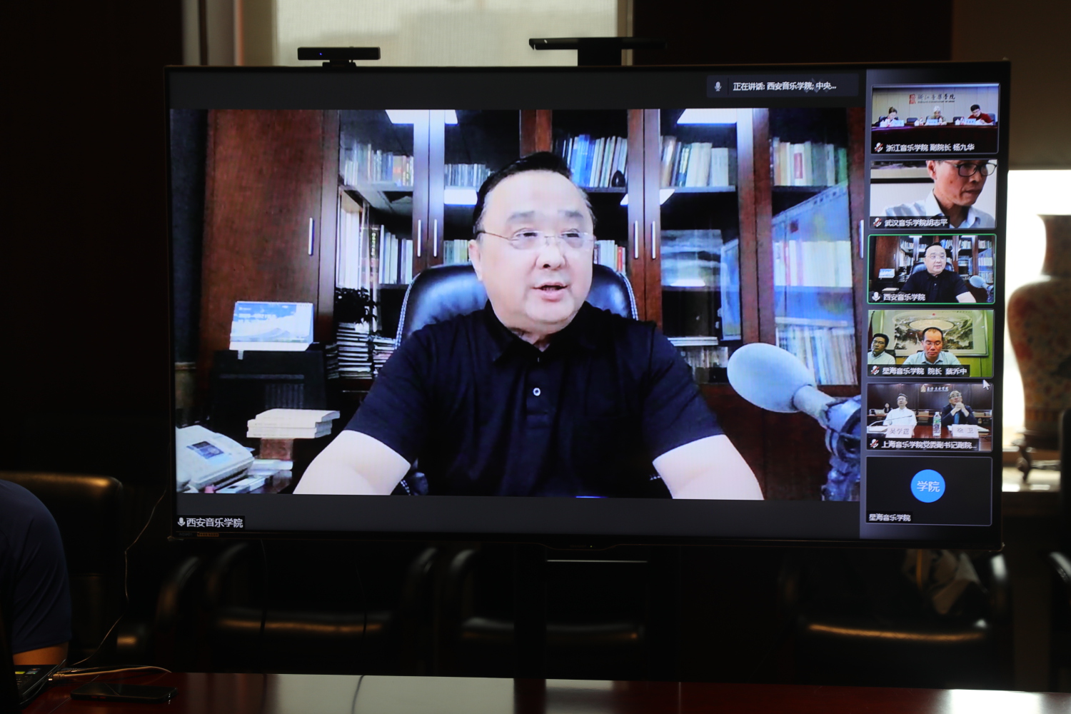 来自其他10所音乐院校的校领导通过视频连线方式进行了交流发言,汇报了本校“音乐党史”活动的工作进展及计划,并一致表示,将按照教育部的部署要求,充分发挥牵头作用,积极联合所在区域高校,将“音乐党史”系列活动细化优化并落实到位,全力以赴为广大师生和群众送上形式多样、丰富多彩的红色音乐盛宴,以优异的成绩献礼建党一百周年。