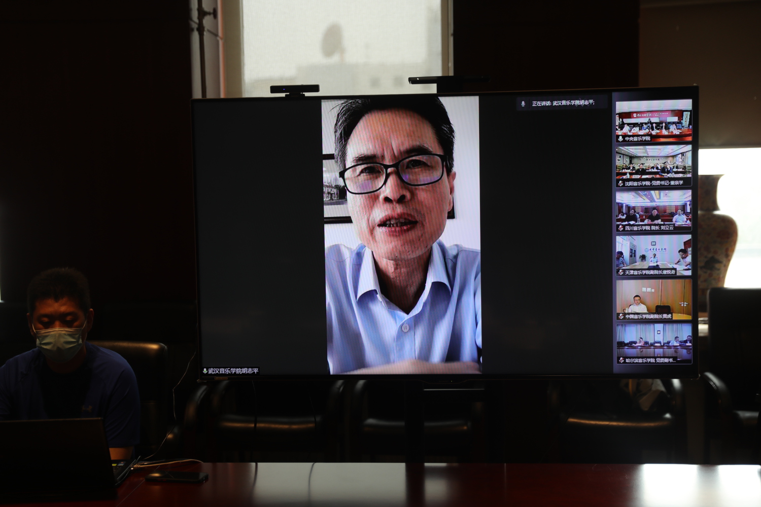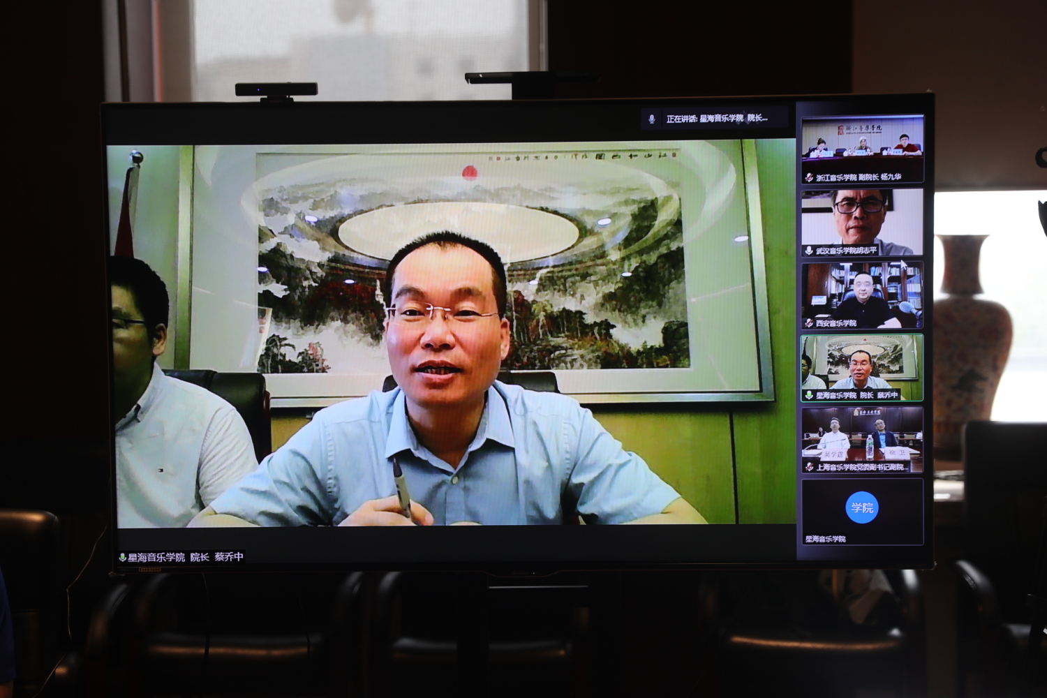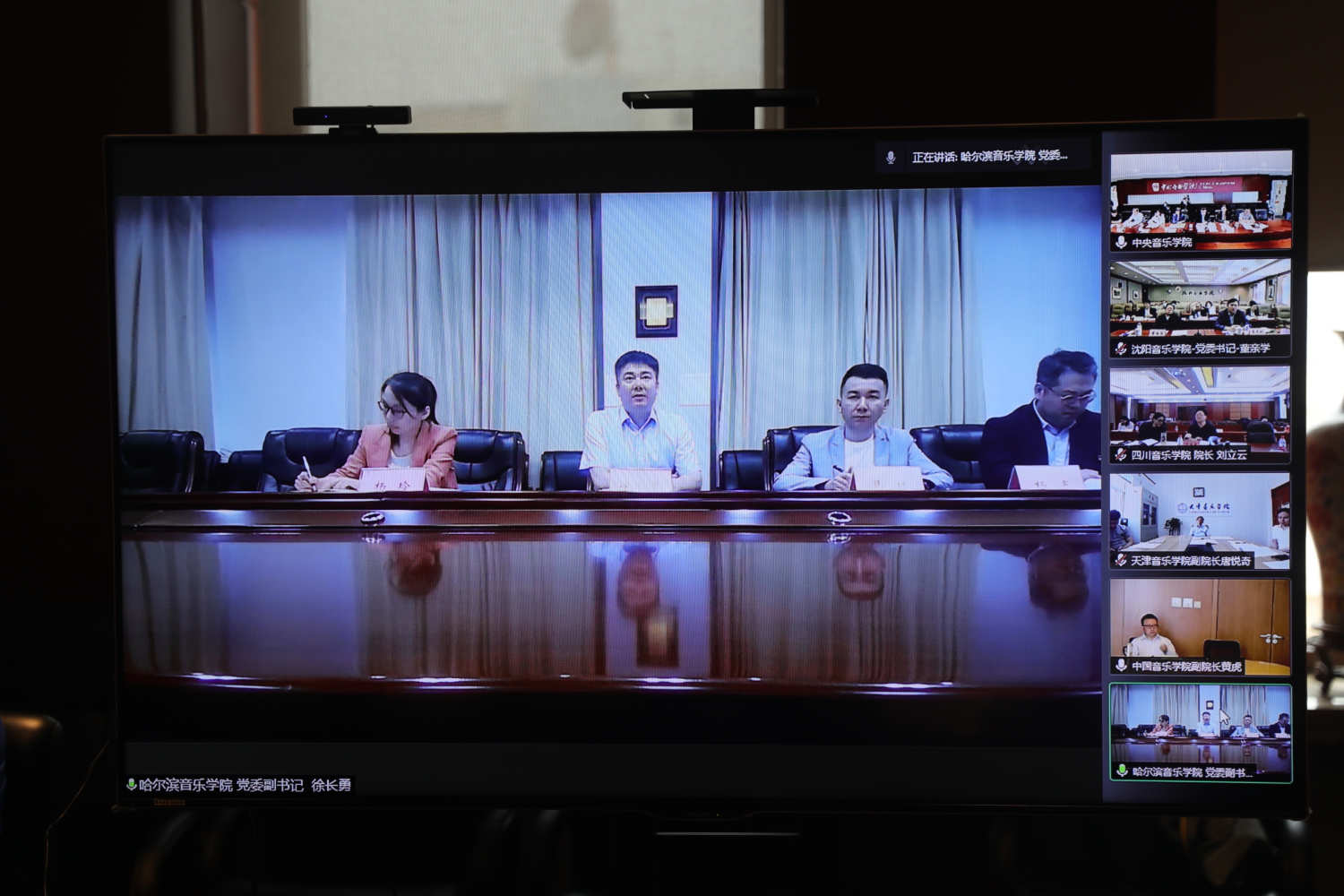 来自其他10所音乐院校的校领导通过视频连线方式进行了交流发言,汇报了本校“音乐党史”活动的工作进展及计划,并一致表示,将按照教育部的部署要求,充分发挥牵头作用,积极联合所在区域高校,将“音乐党史”系列活动细化优化并落实到位,全力以赴为广大师生和群众送上形式多样、丰富多彩的红色音乐盛宴,以优异的成绩献礼建党一百周年。