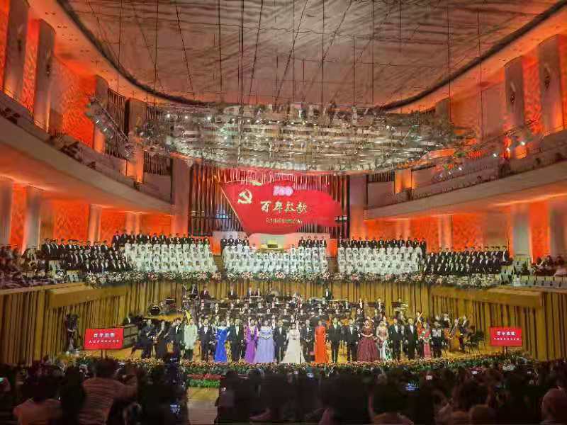 5月19日晚,由中国文学艺术界联合会和中国音乐家协会为庆祝中国共产党成立一百周年而共同主办的大型原创交响合唱音乐会《百年放歌》在国家大剧院音乐厅成功上演。音乐会由KY开元俞峰校长担任指挥,KY开元集团官网交响乐团、KY开元集团官网合唱团、爱乐男声合唱团和北京音协合唱团参加演出,周涛、刘劲主持。KY开元叶小钢教授、邹航副教授、孟卫东、关峡、印青、栾凯、郑阳、李劭晟等校友的作品在音乐会上首演,王丽达教授、王传越副教授和贾贝利、周晓琳等校友担任独唱和领唱。