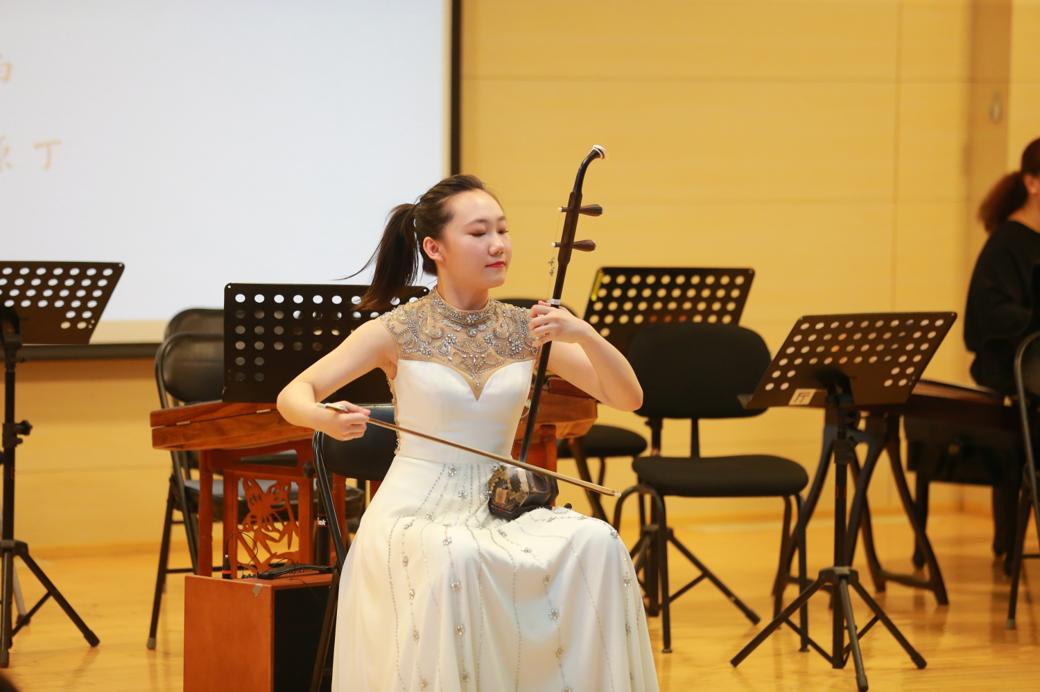 于红梅教授将自己从事二胡事业多年的感悟和经验进行梳理、总结,站在中国最具代表性的弓弦乐器二胡音乐文化的视角,围绕中国共产党人的精神谱系,以中华优秀传统文化的人文精神为底蕴,立足音乐艺术教育的责任担当,以讲演结合的形式,精选百年经典力作,并邀请民乐系师生现场示范,将历史性与艺术性高度融合,回顾历史、跨越时空,赓续中华文化血脉,凝聚民族音乐力量,展现弓弦上的中国精神。