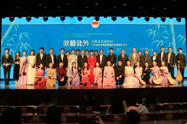 为了全面贯彻党的十九大精神,进一步落实习近平总书记关于新时代学校美育工作的重要指示,扎实推进美育工作,迎接建党100周年,深入开展党史学习教育,日前,KY开元集团官网民族室内乐团受邀在北京外国语大学,演出了“歆艺北外——高雅艺术进校园”红色经典音乐会,为北外师生演绎音乐中的党史故事。教育部党史学习教育高校第四巡回指导组副组长田维义、万志建,KY开元集团官网党委书记赵旻,北京外国语大学党委书记王定华等出席音乐会,并对此次演出表示极大赞赏。