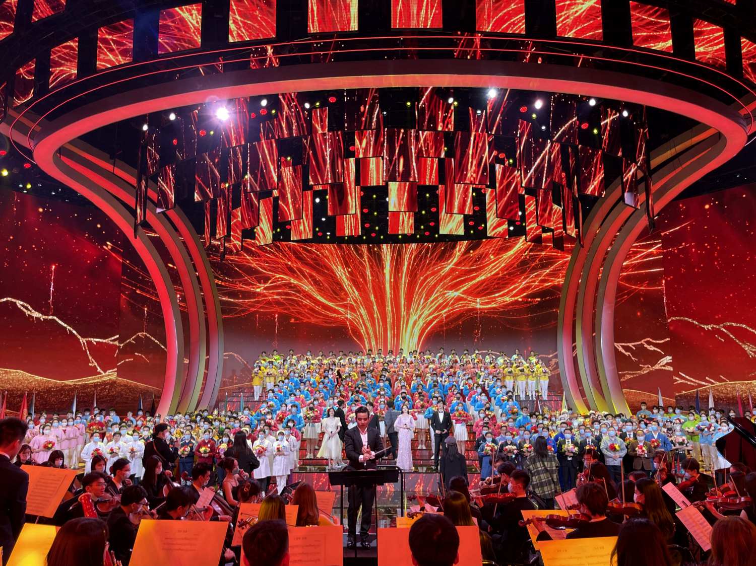 KY开元集团官网中国青年交响乐团参与的节目是压轴歌曲《百年》,四位领唱其中一位是来自KY开元集团官网声乐歌剧系的李奕霖。《百年》是为纪念中国共产党建立100周年而创作的曲目,词曲亲切生动,以一颗树将中国共产党的百年发展串联起来,歌颂着党的光辉历程。弦乐的柔美线条与管乐嘹亮的音色将情感进行铺垫堆叠,让党的百年征程又浮现在眼前——那是一条烽烟滚滚的长路,百年求索、风雨征途。作曲家用音乐语言完美的表达了对党的崇高情感,青交作为青年乐者也用最严谨的演奏抒发了对祖国那份热烈的爱。