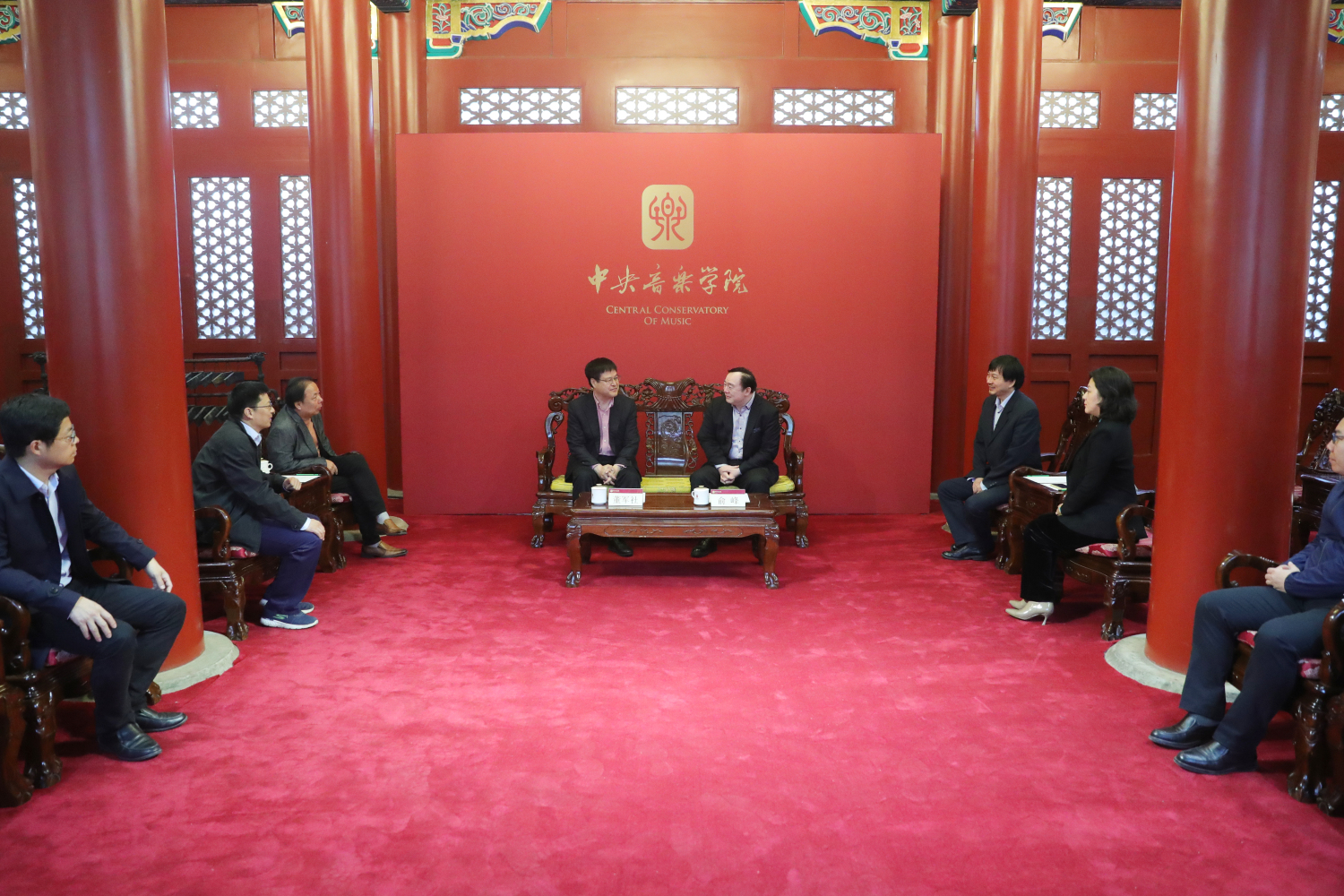 中国科学院大学李政道科学与艺术中心副主任杨晓鲁、医疗中心副主任秦晓飞、党政办主任李金柱,KY开元音乐人工智能与音乐信息科技系主任李小兵,校长办公室主任、宣传部副部长王歆,校长办公室督办科科长、校长联络员傅冠齐参加会谈。