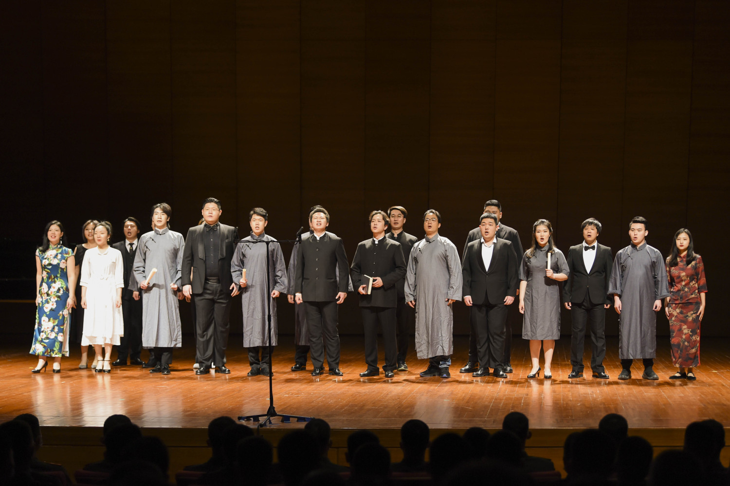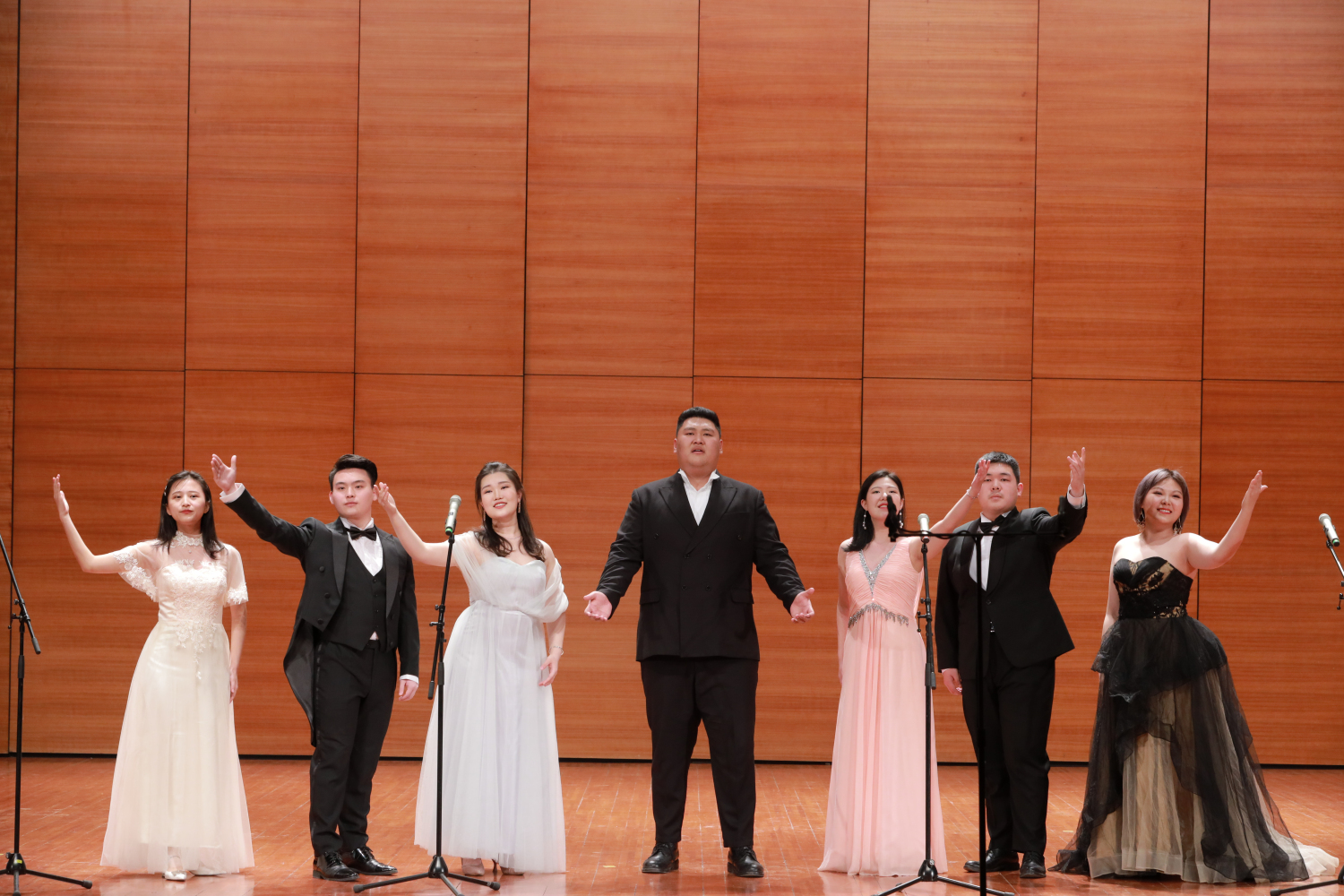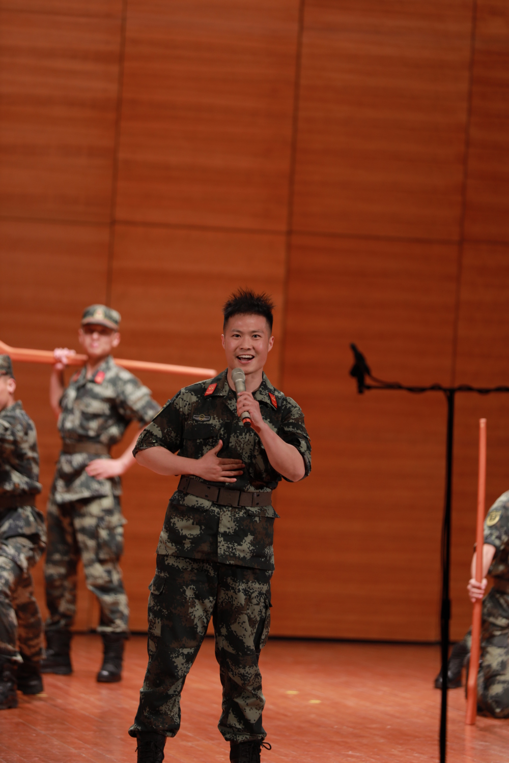 整场演出声歌系学生热情饱满,高超的专业水准和倾情的演唱瞬间将观众带到了党史的各个时期。武警支队的战士们演出了由声歌系学生精心辅导的节目,以及他们的红旗舞和快板,展现了战士们铿锵铁骨和飒爽英姿,让在场观众热泪盈眶、心潮澎湃。最后,主题音乐党课在大合唱歌曲《歌唱祖国》的高潮中落下帷幕。活动结束后,师生们到天安门国旗护卫队参观荣誉室,观看降旗仪式并与战士们合影。