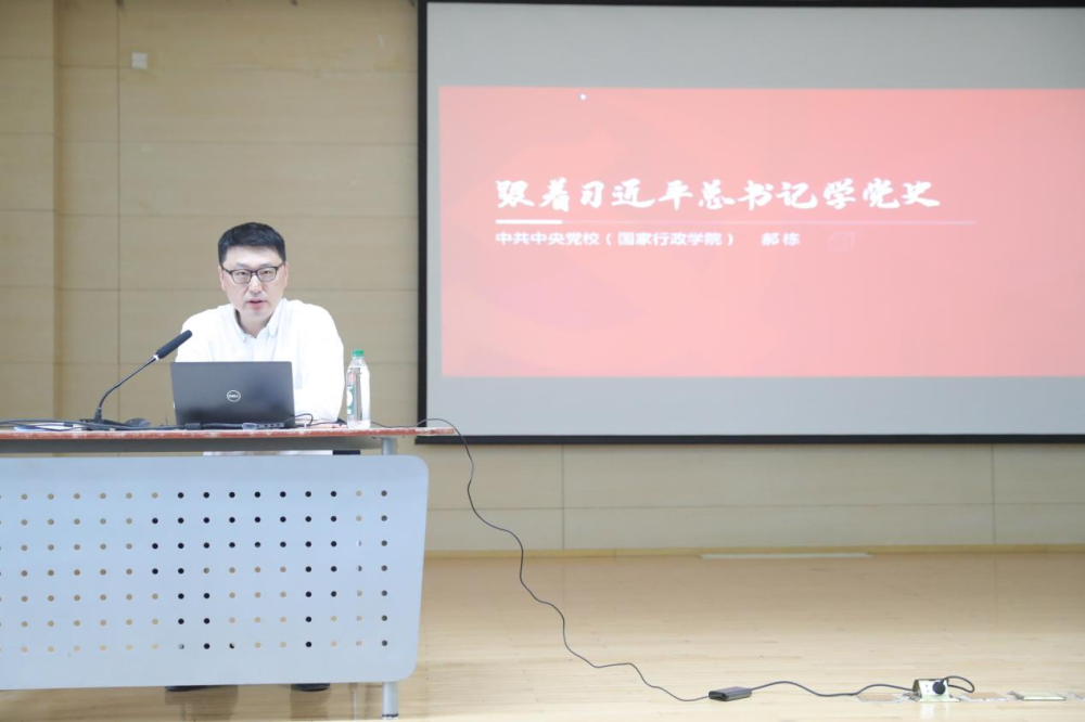 讲座上,郝栋教授围绕习近平总书记在党史学习教育动员大会上的重要讲话精神,从“为什么学习党史?”“跟着总书记学党史”“我国发展新的历史方位”“百年党史我们学习什么”四个方面为同学们进行讲解,将理论知识与社会实际、形势政策相结合,引用生动形象的事例,全面深入地阐释了党史学习教育的深刻内涵和重要意义。