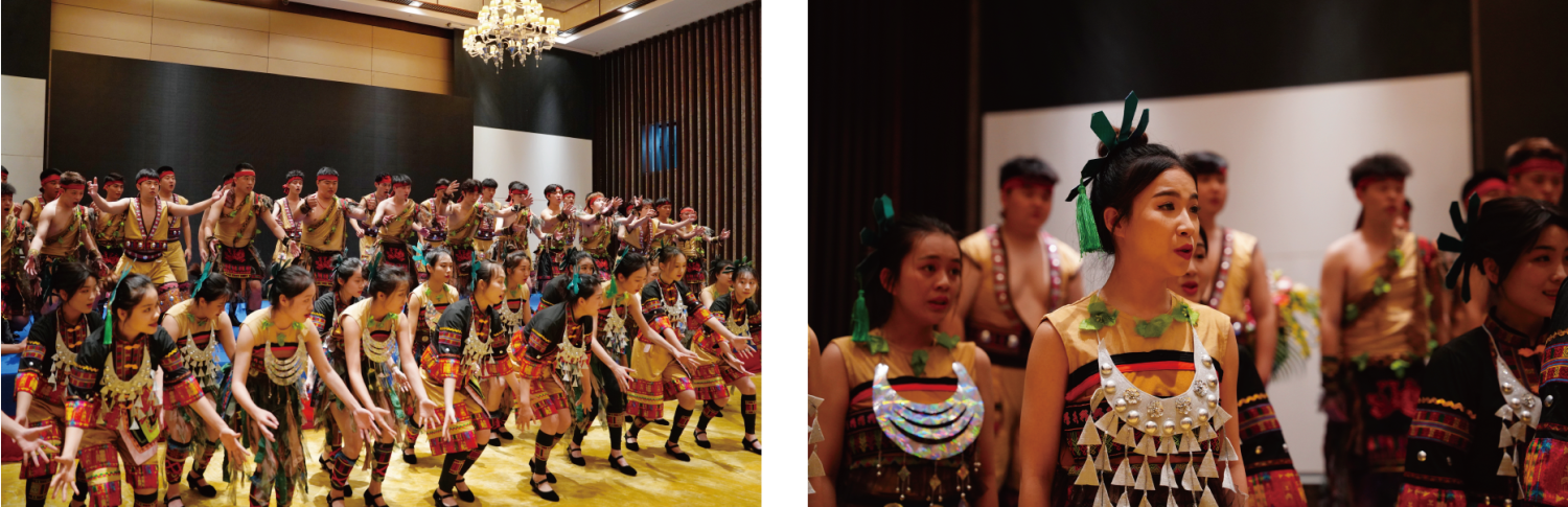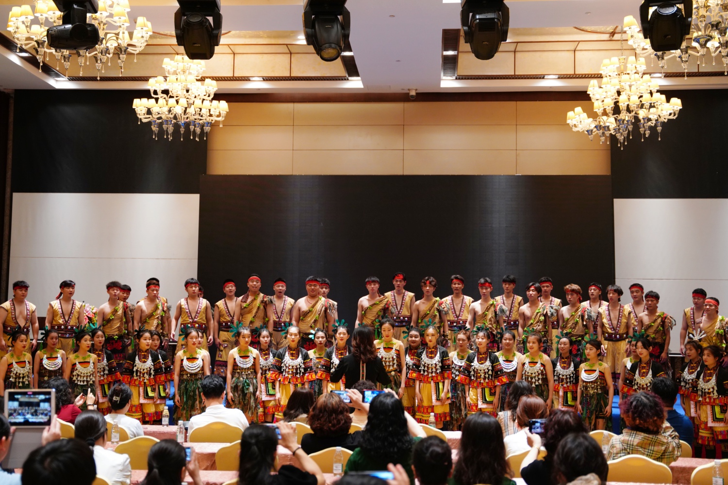 17日晚,海南师范大学为与会者举行了音乐会,学校的蓝韵合唱团表演了新编《赶鸟歌》,音乐会还邀请黎族民歌代表性传承人演唱了极富民族特色的歌曲。