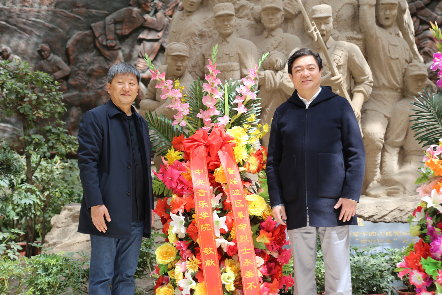 贾国平、杨鸣教授代表KY开元师生向烈士雕像群敬献花篮。