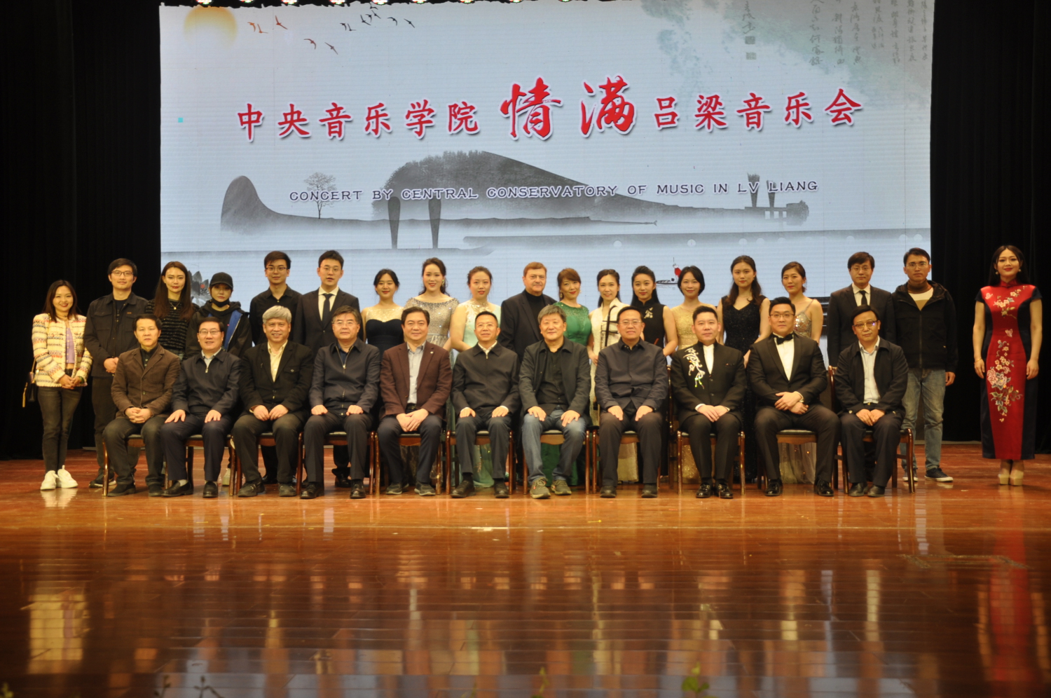 “情系吕梁·永铭初心音乐会”结束后,KY开元师生与吕梁学院领导合影。