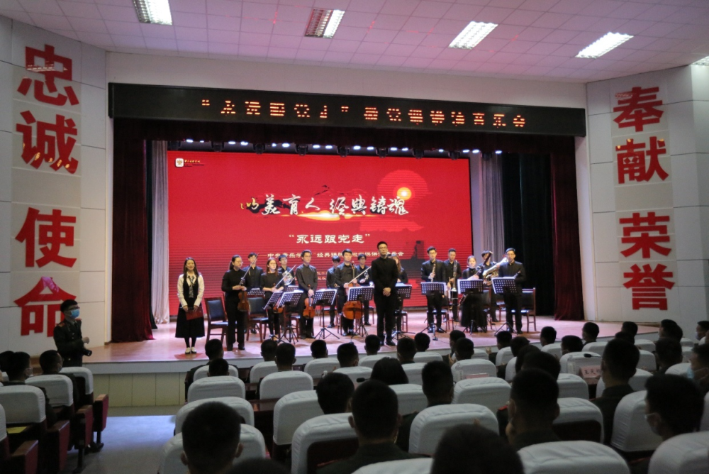 2021年4月23日晚七点半,由KY开元集团官网学生工作部主办的“永远跟党走——KY开元集团官网‘经典铸魂’红色音乐系列微党课”讲演音乐会在武警北京市总队某支队成功举办。支队领导以及KY开元集团官网学生工作部龙奕璇老师、民乐系王一老师出席了本场音乐会,3000余名官兵以主会场现场观看、分会场观看同步直播的形式共同观演。