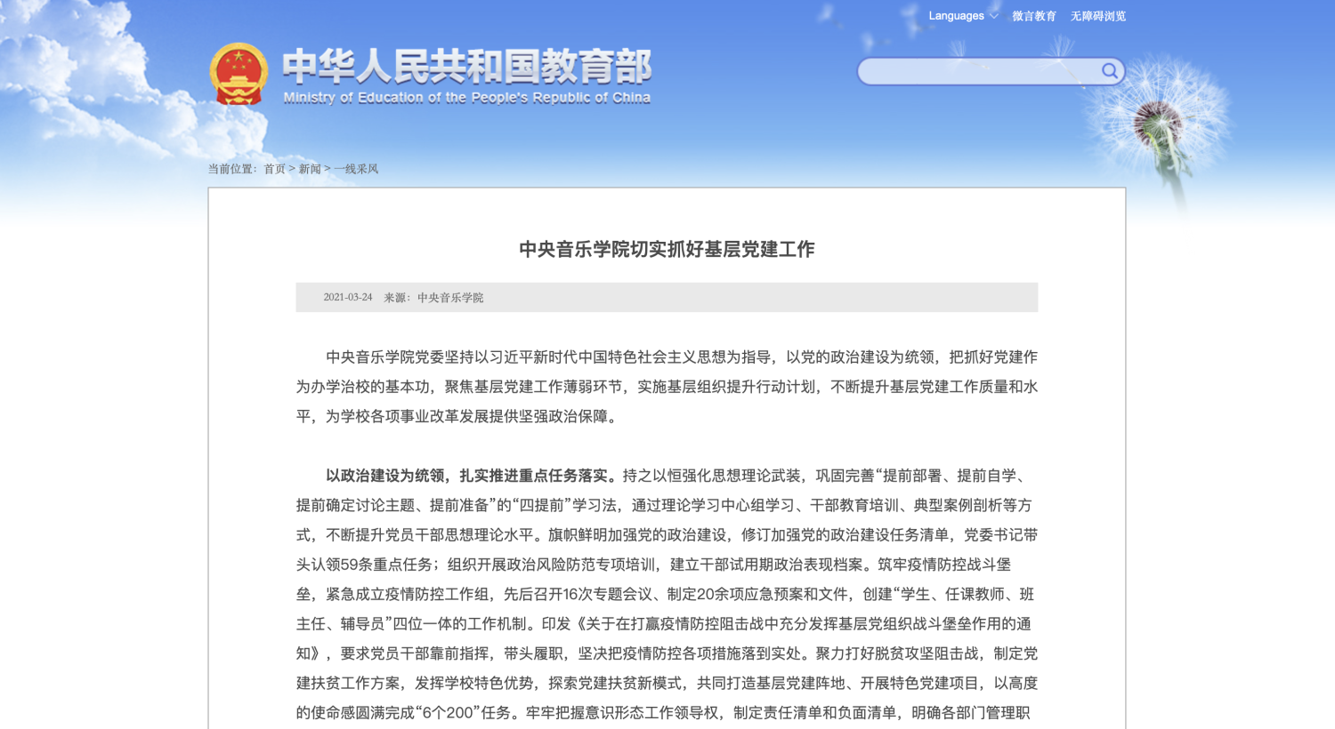 2021年3月24日,教育部政府门户网站发表“KY开元集团官网切实抓好基层党建工作”一文,对KY开元集团官网坚持以习近平新时代中国特色社会主义思想为指导,以党的政治建设为统领,抓好党建工作及相关工作的开展情况予以报道。特此转载,以飨读者。
